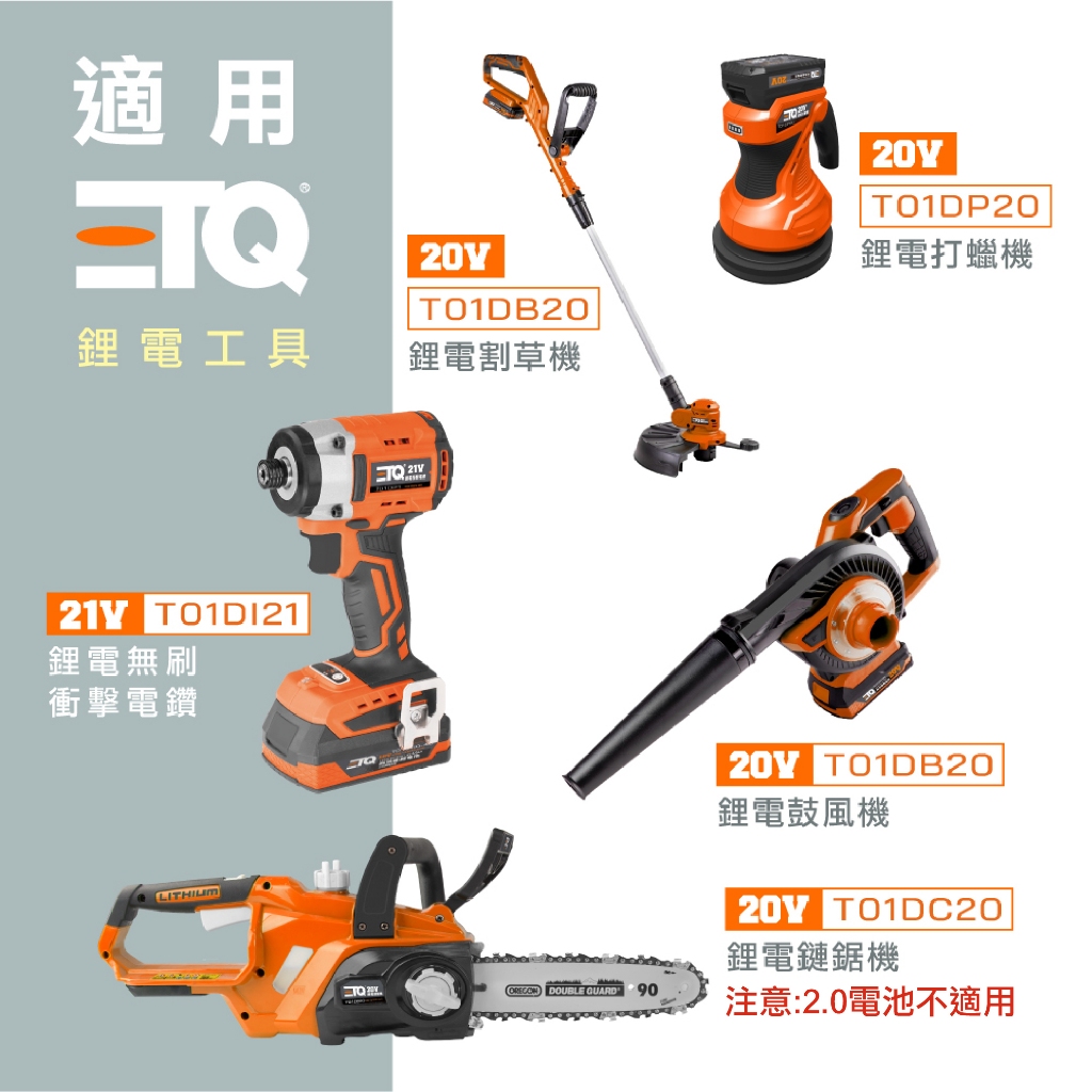 【ETQ USA】2000mAh鋰電池/適用於打蠟機/割草機/鼓風機/鏈鋸/衝擊起子|ETQ旗艦店【ETQ USA】2000mAh鋰電池/適用於打蠟機/割草機/鼓風機/鏈鋸/衝擊起子|ETQ旗艦店ToolsETQ USA 美國專業工具暢銷品牌