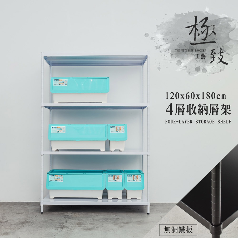 dayneeds 高強度鐵板四層架120x60x180公分(烤漆)單層荷重200kg 無洞鐵板層架 展示架黑色|白色Shelves & Racksdayneeds收納生活館