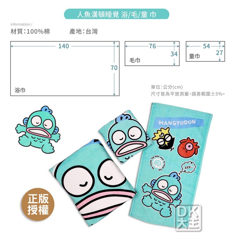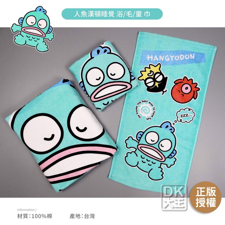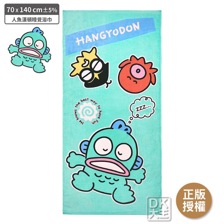 人魚漢頓 (醜魚) 睡覺 純棉浴巾 吸水大浴巾 三麗鷗 日本正版授權【DK大王】人魚漢頓(醜魚)純棉浴巾/1條Towels & BathrobesDK大王旗艦店