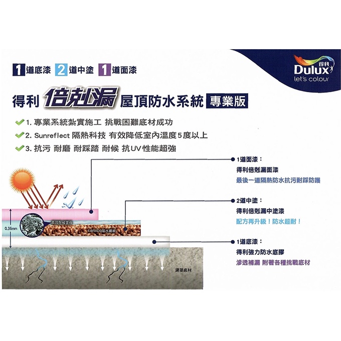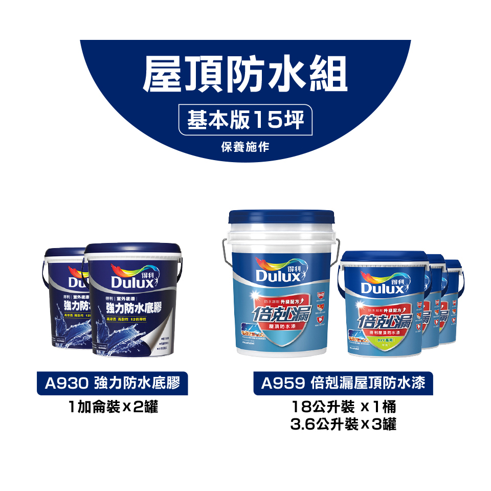 【得利官方旗艦店】15坪基本版 A959倍剋漏屋頂防水組冷寒銀|冰雪白|湖水綠|沁涼藍Wall Paints & CoatingsDulux得利塗料官方旗艦店