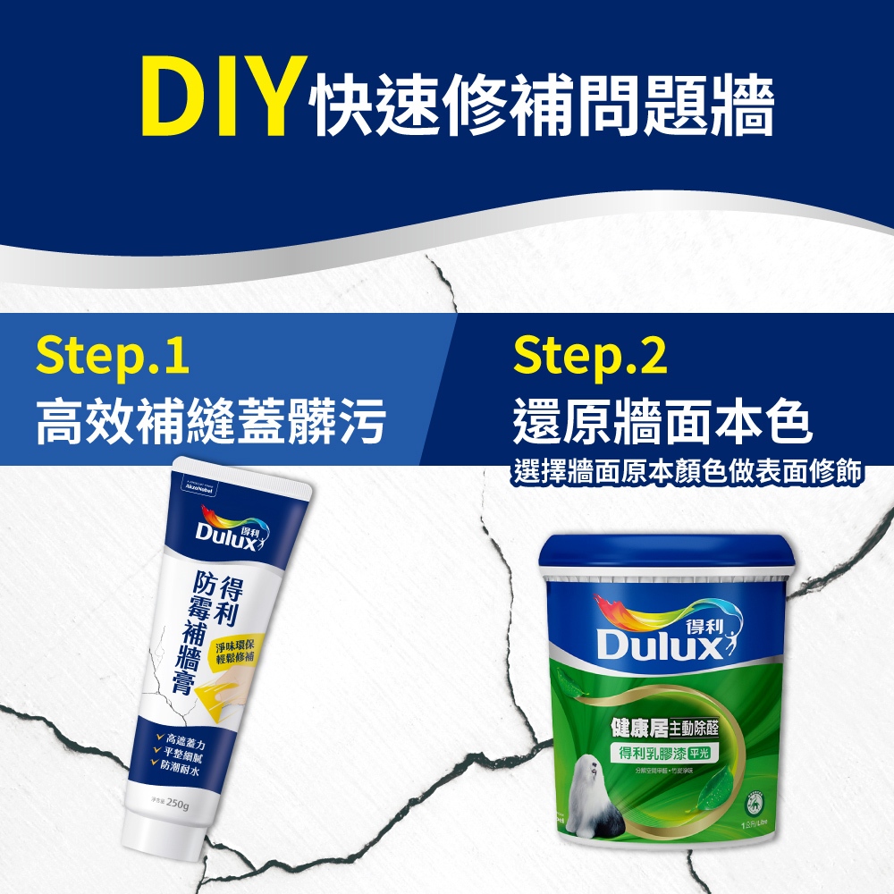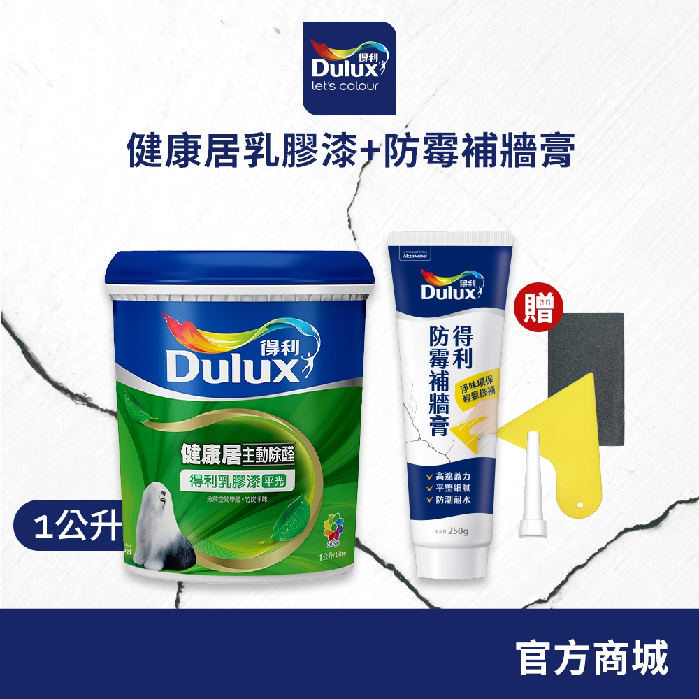 【得利官方旗艦店】健康居乳膠漆+防霉抗菌補牆膏 電腦調色(1公升裝組).|下單時請備註色號(客製色無退換)Wall Paints & CoatingsDulux得利塗料官方旗艦店
