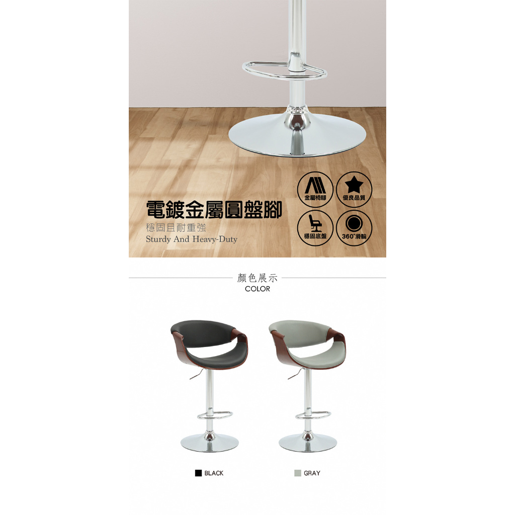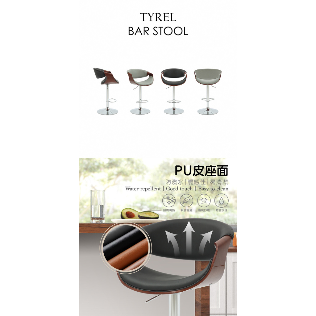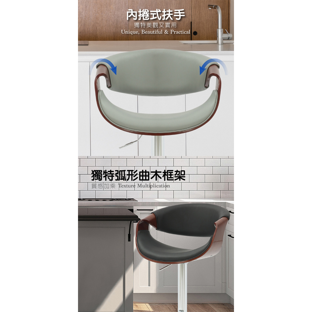 E-home 泰瑞爾面流線曲木可調式吧臺椅 高腳椅 升降椅 餐桌椅 椅子 吧台椅黑色|灰色Benches, Chairs & StoolsE-home 美規設計傢俱