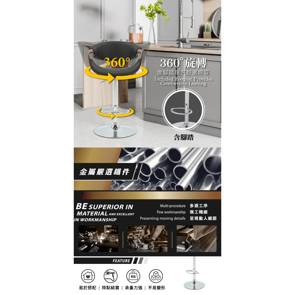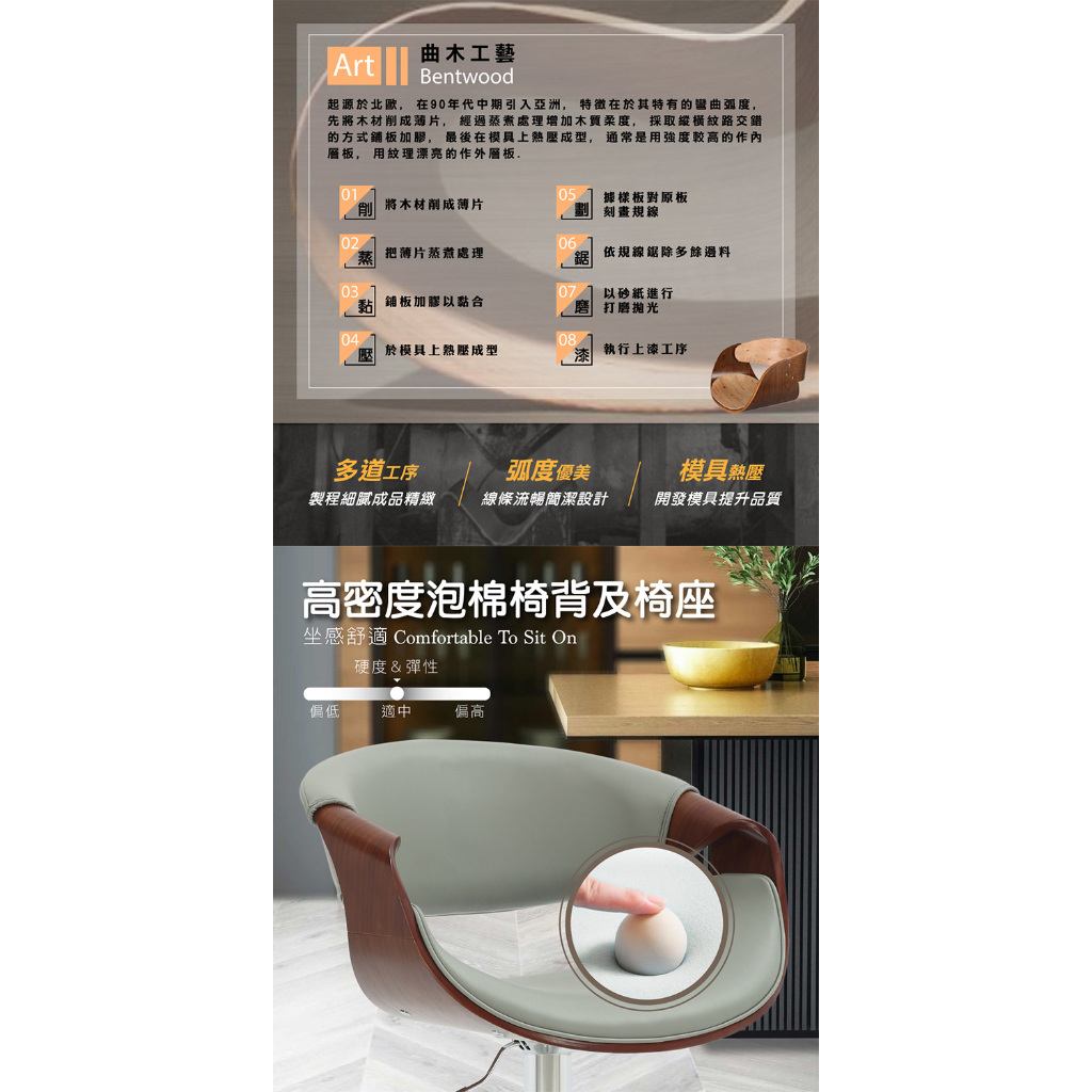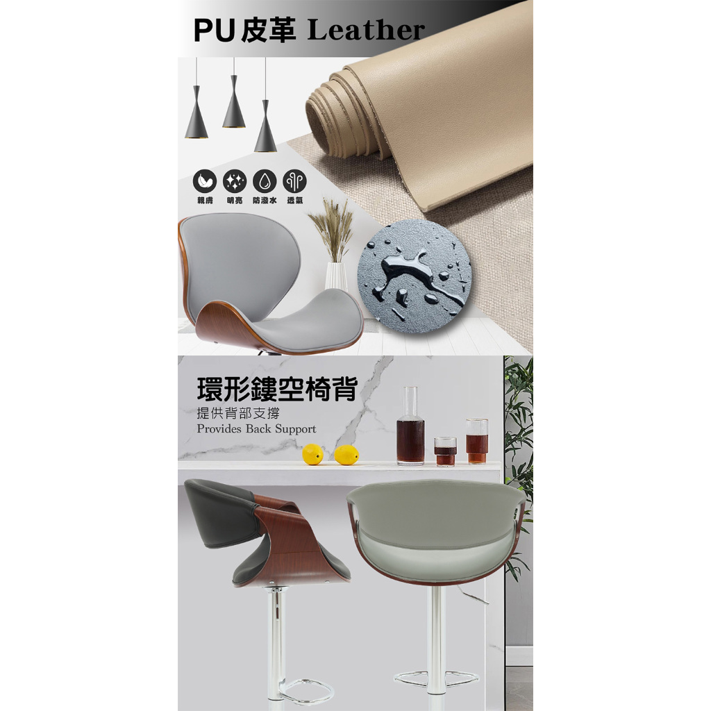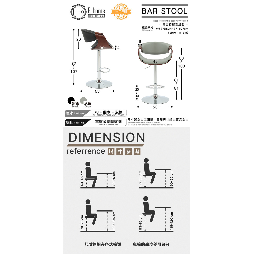 E-home 泰瑞爾面流線曲木可調式吧臺椅 高腳椅 升降椅 餐桌椅 椅子 吧台椅黑色|灰色Benches, Chairs & StoolsE-home 美規設計傢俱