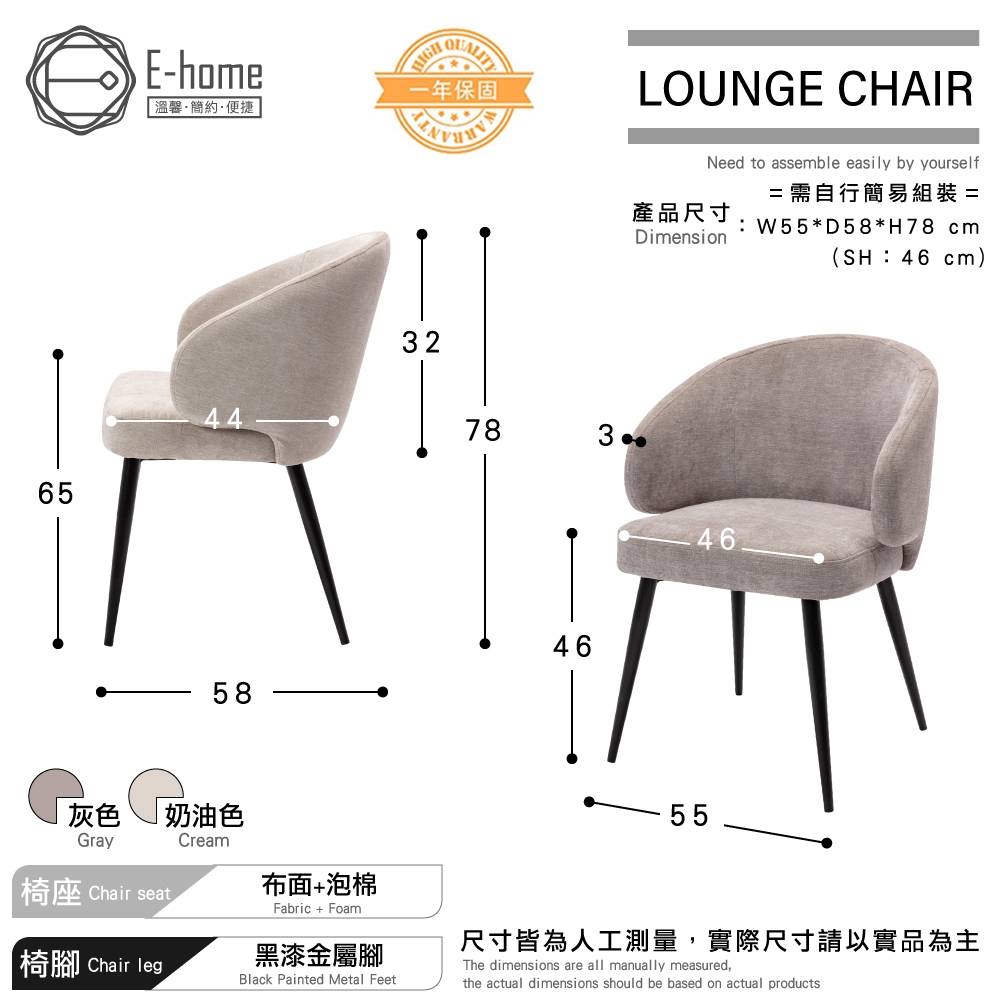 E-home 法拉簡約布面扶手休閒椅 沙發 椅子 懶人沙發 沙發椅 單人沙發 椅子灰色|奶油色Benches, Chairs & StoolsE-home 美規設計傢俱