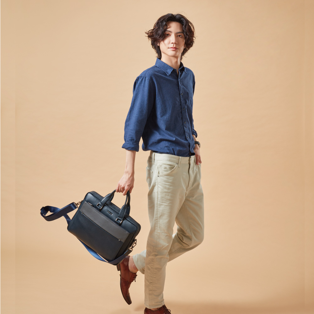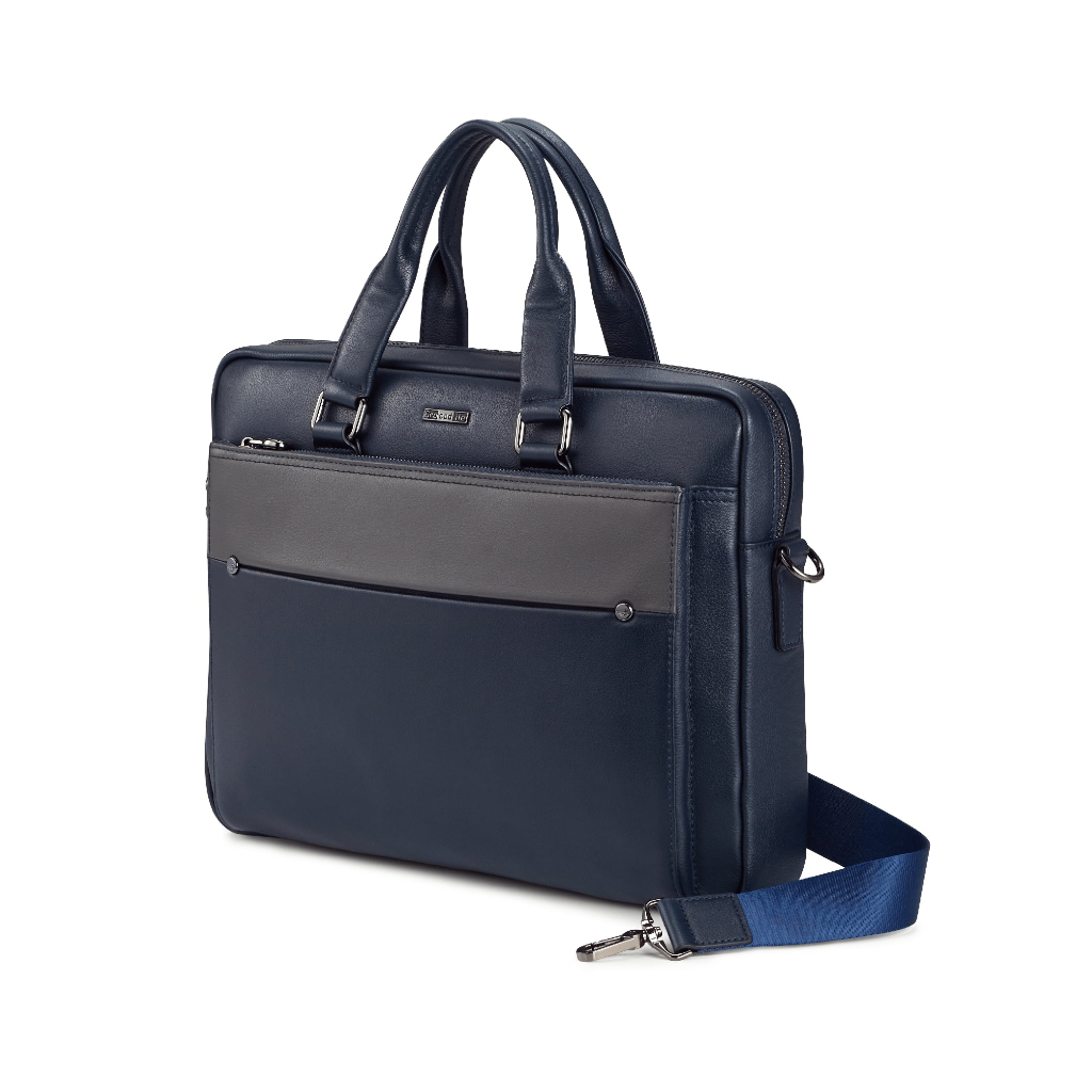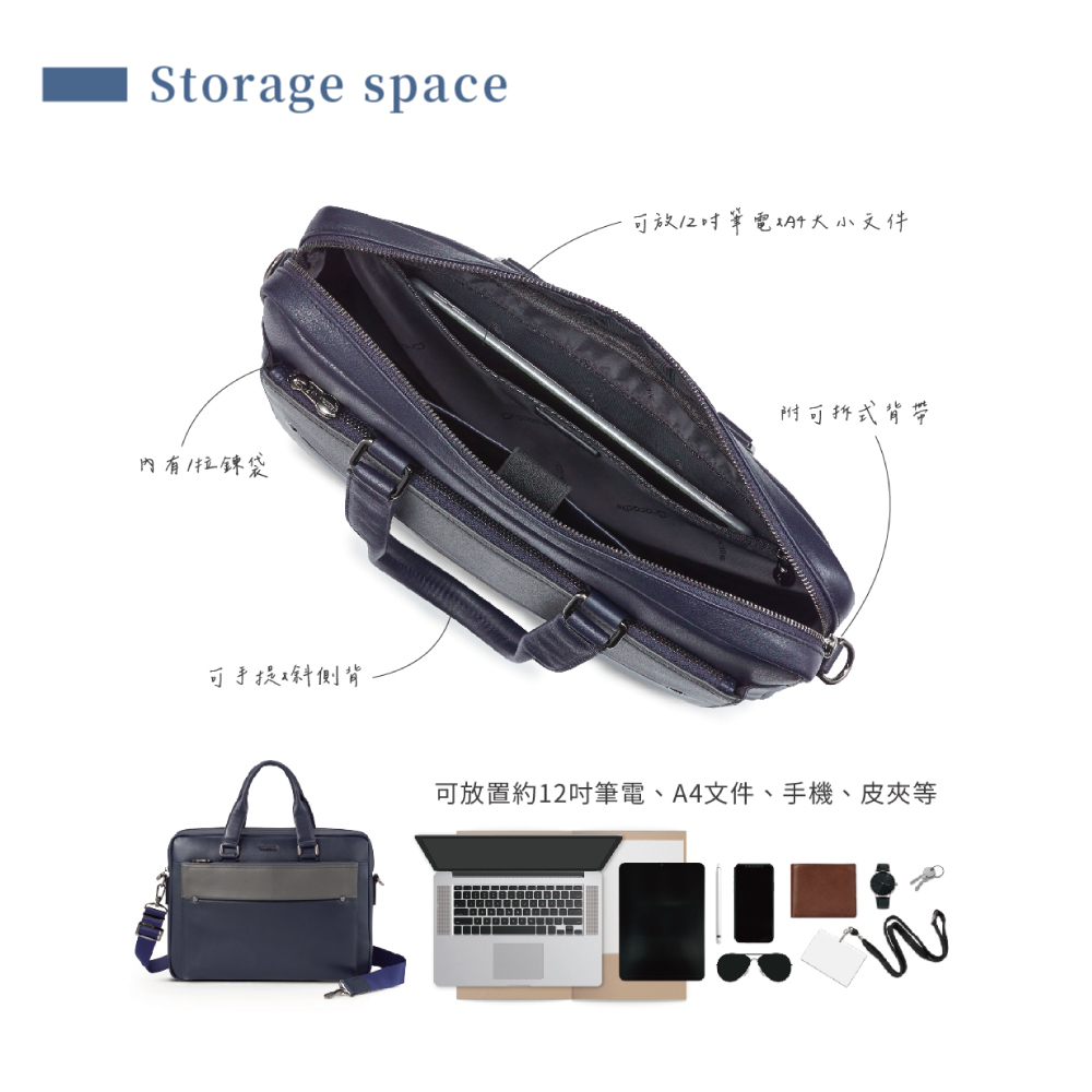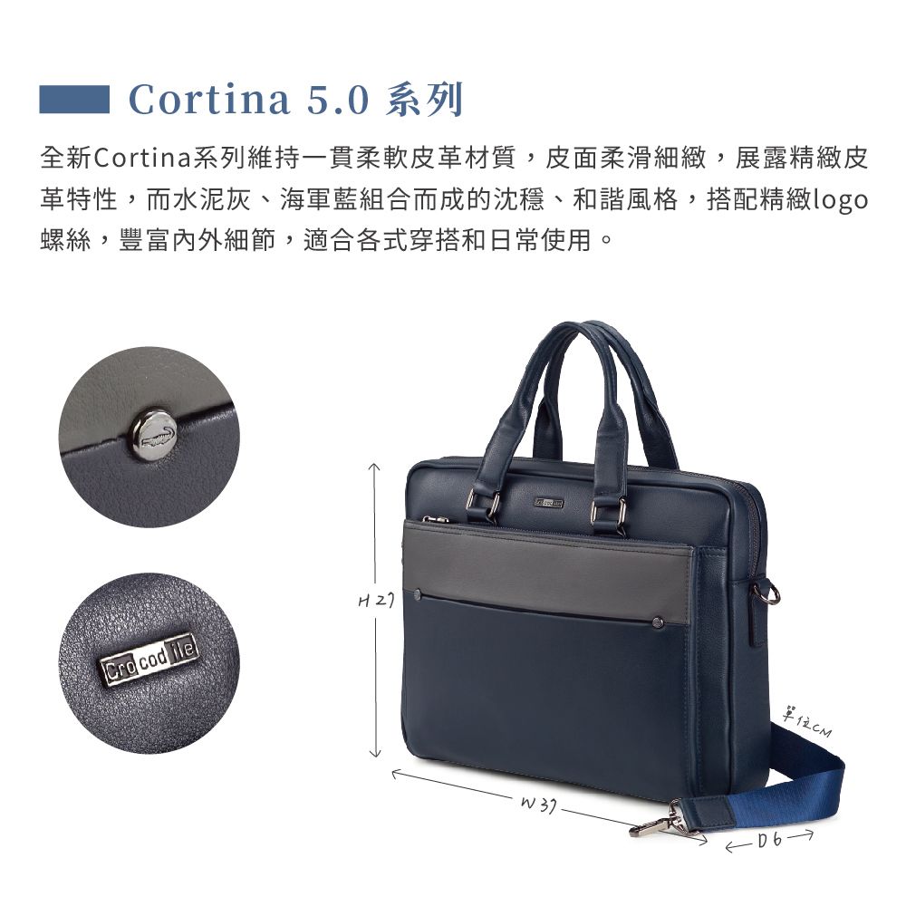 Crocodile鱷魚皮件 手提公事包 可斜背 商務筆電包 適用12吋筆電-0104-10603藍色Crocodile 鱷魚皮件官方旗艦店