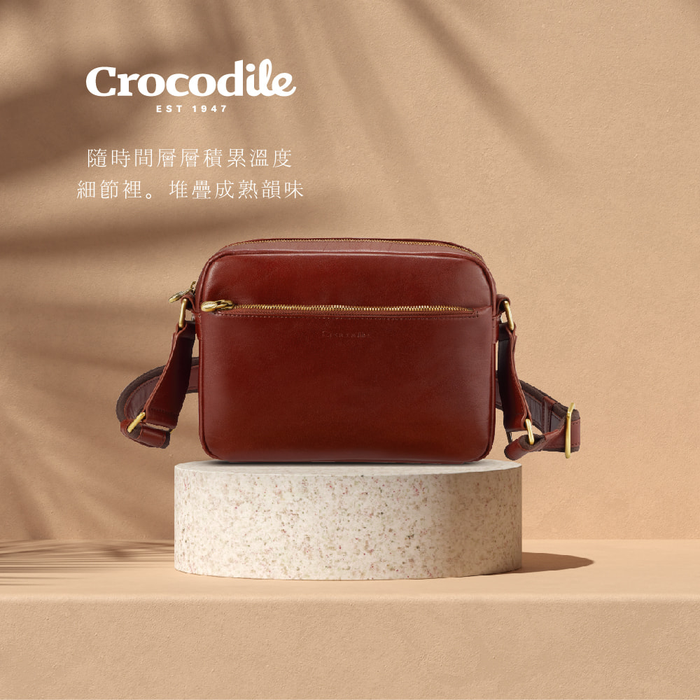 Crocodile鱷魚皮件 橫式側背包(S) 斜背包 相機包 植鞣革 適用8吋平板-0104-10703咖啡色Crocodile 鱷魚皮件官方旗艦店