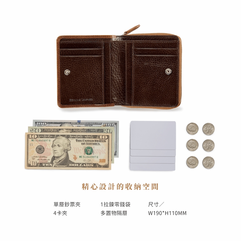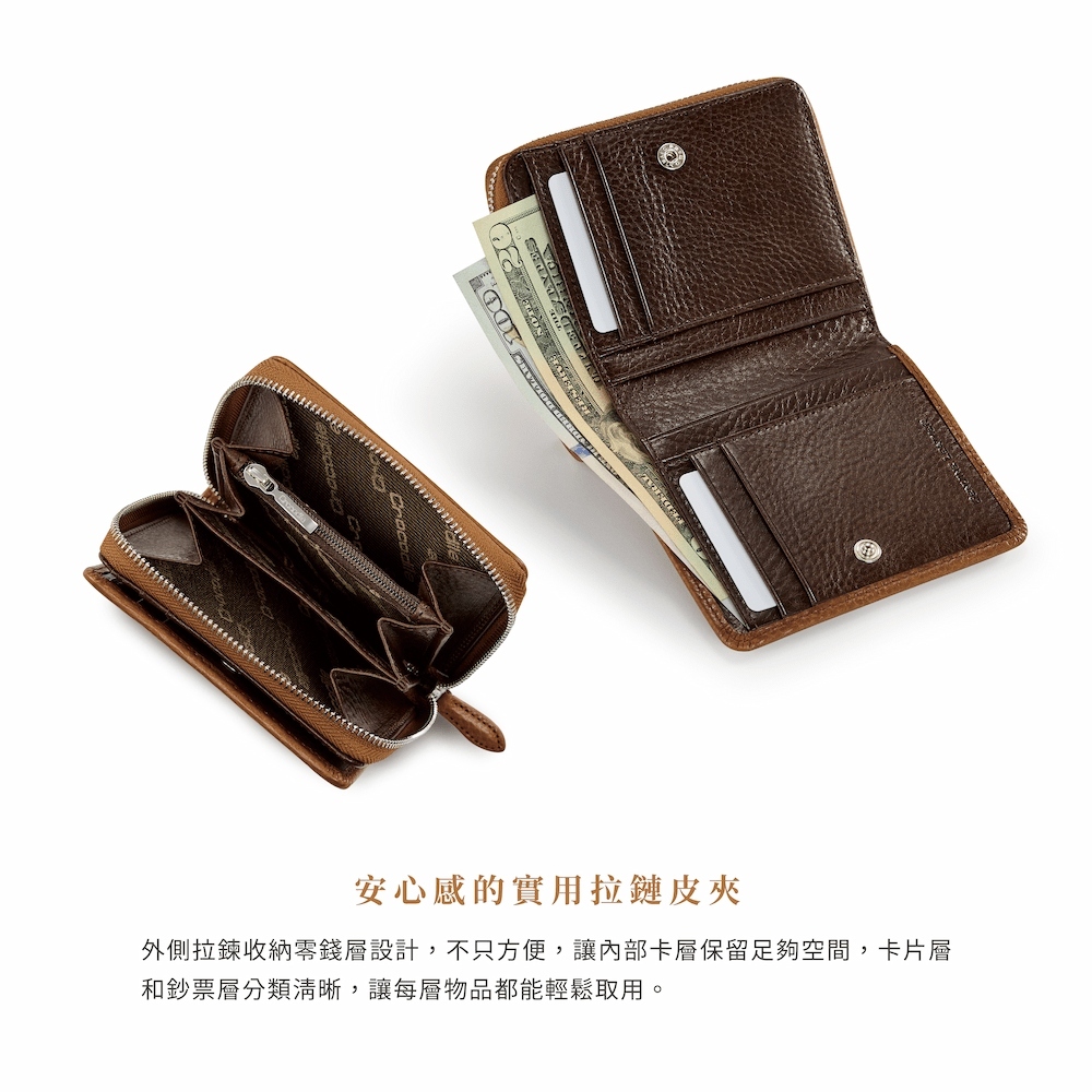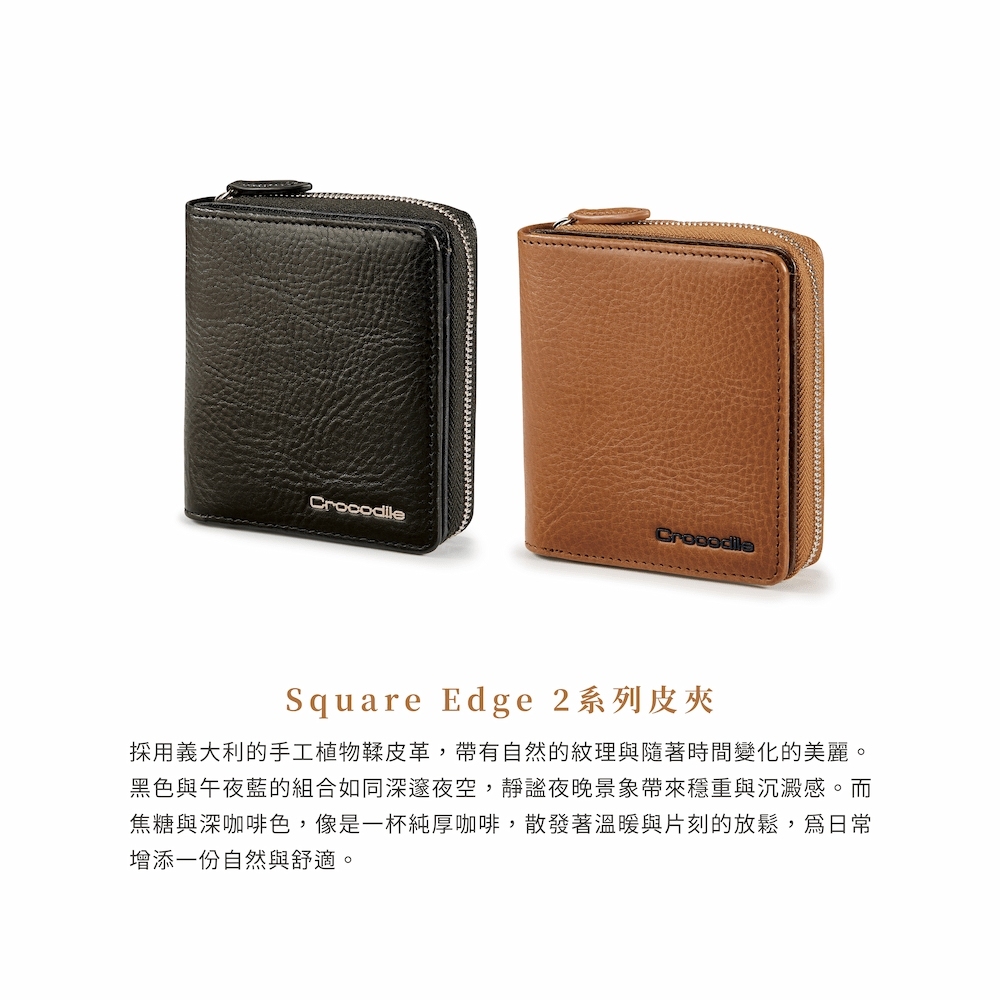 Crocodile鱷魚皮件 男生皮夾 拉鍊零錢袋短夾 4卡 多置物隔層 Square Edge系列-0103-11502黑色|淺咖啡色Bifold & Trifold WalletsCrocodile 鱷魚皮件官方旗艦店