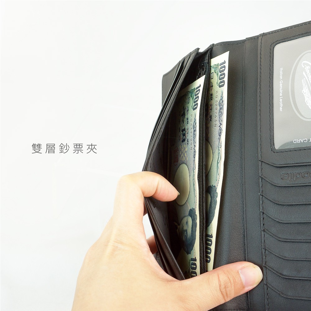Crocodile 鱷魚皮件 真皮長夾 男皮夾 拉鍊零錢袋 男夾 17卡/1窗 Wind系列 0103-5910-黑咖黑色|深咖啡Long WalletsCrocodile 鱷魚皮件官方旗艦店