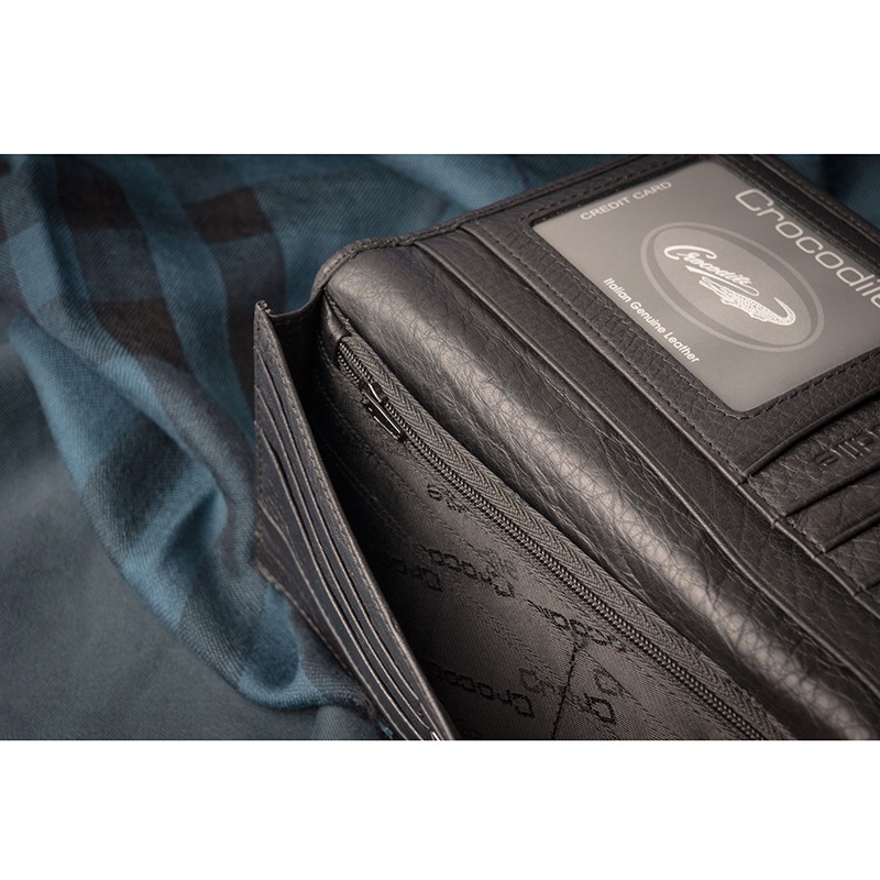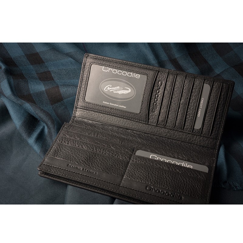 Crocodile 鱷魚皮件 真皮長夾 男皮夾 荔紋軟皮 Classic經典系列 0103-3351-黑咖兩色黑色|咖啡色Long WalletsCrocodile 鱷魚皮件官方旗艦店