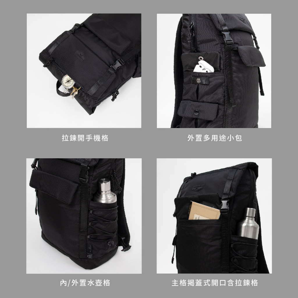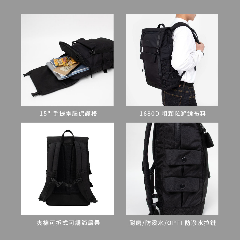 DOUGHNUT官方賣場 15吋 Lucid 電腦大後背包 防潑水 日常商務 男包推薦 ACT黑Laptop BackpacksDOUGHNUT | 台灣商城