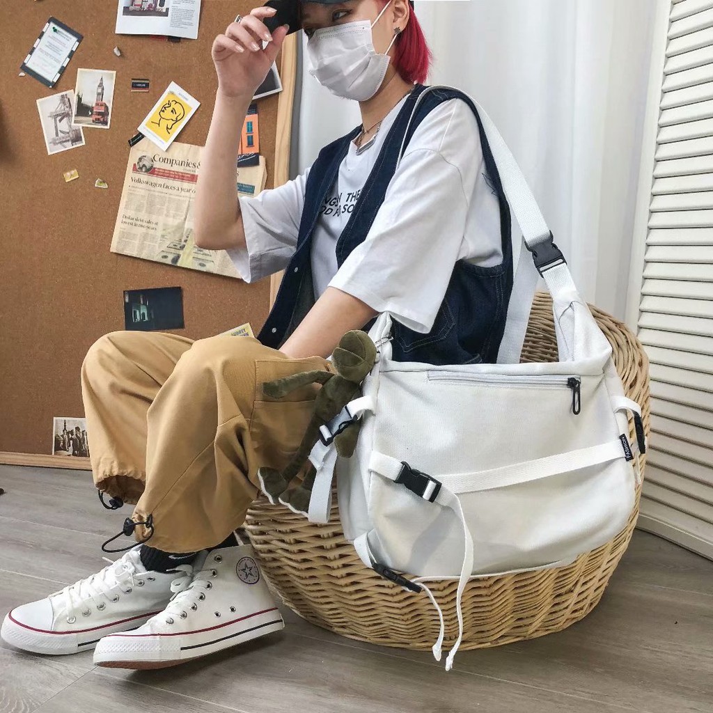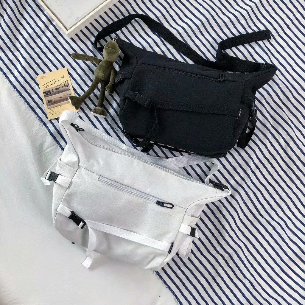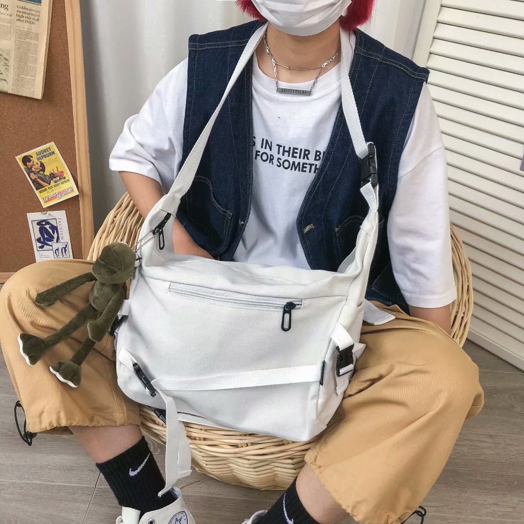 韓版原宿風機能工裝帆布包 大容量單肩包 男女斜挎包(WWB14)【FIZZE】黑色,F|白色,FFIZZE