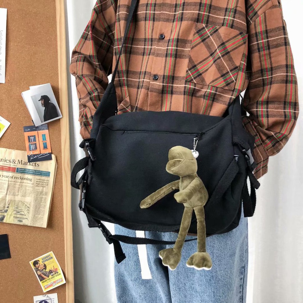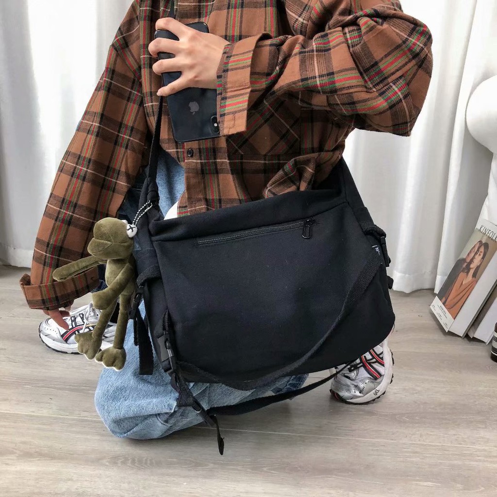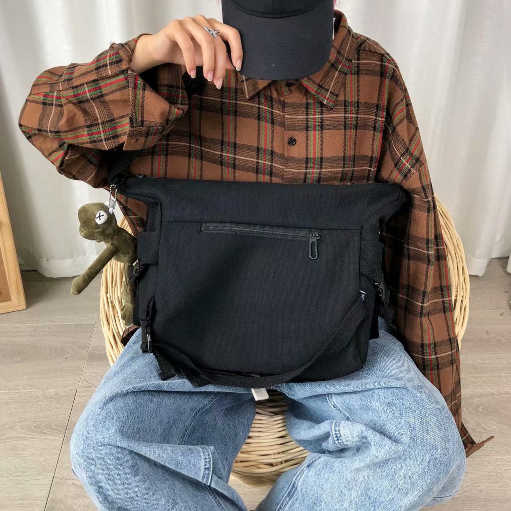 韓版原宿風機能工裝帆布包 大容量單肩包 男女斜挎包(WWB14)【FIZZE】黑色,F|白色,FFIZZE