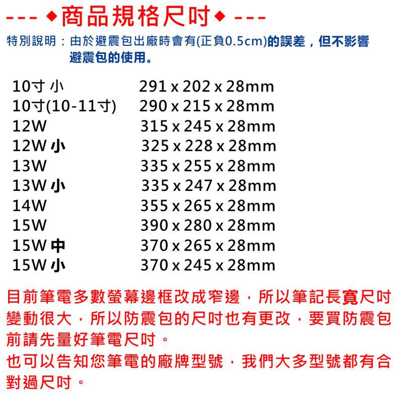 【特惠價】12-15吋寬筆電包組 (避震包+電源包+三條彩色束線帶) 每組特惠價 235元13吋寬大 335x255x28mm|13吋寬小 335x247x28mm|14吋寬 355x265x28mm|15吋寬中 370x265x28mm|15吋寬小 370x245x28mm|塑膠 二折筆電支架 2入一組 #2|鋅合金筆電支架單折型 銀色 2入一組|鋅合金筆電支架雙折型 黑色 2入一組|防偷窺鏡頭貼(黑色)一組三個|防偷窺鏡頭貼(白色)一組三個|13~14吋筆電 超細纖維 清潔布|15~16吋筆電 超細纖維 清潔布|塑膠 筆電支架 2入一組 #1|三合一多功能螢幕清潔組Laptop SleevesEZstick 3C商品保護賣場