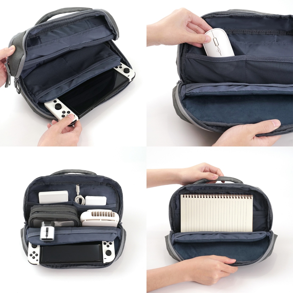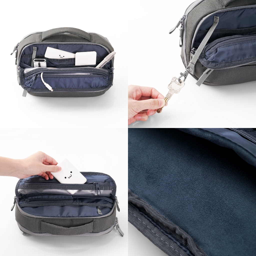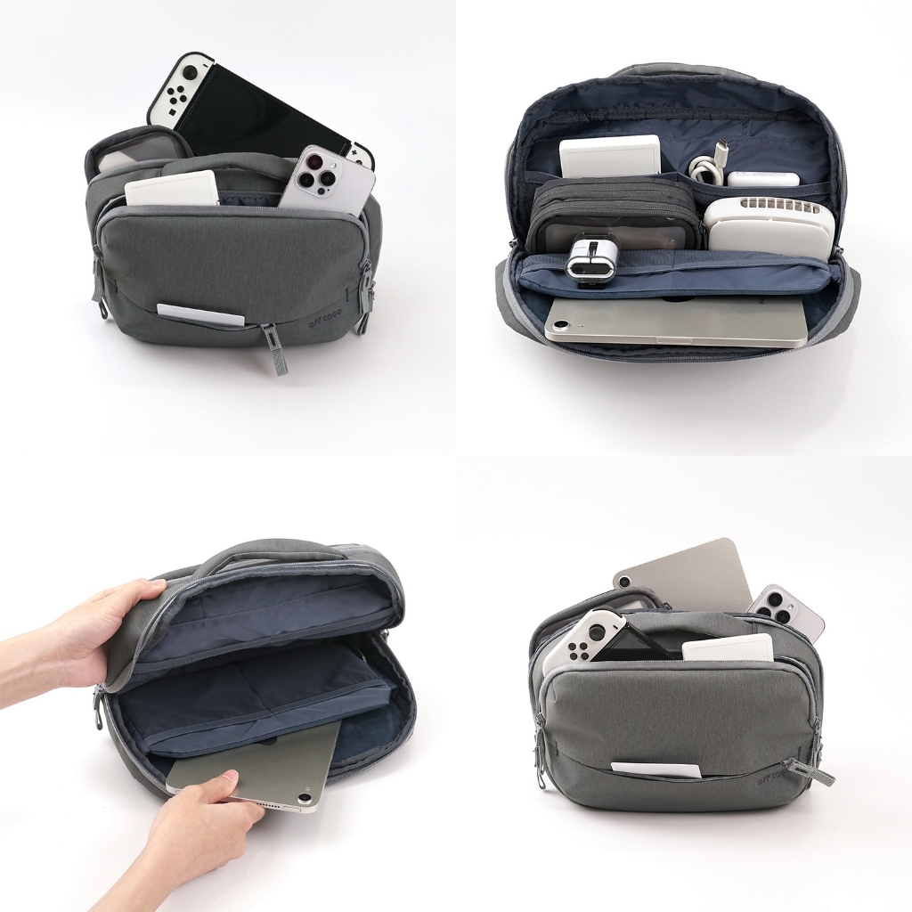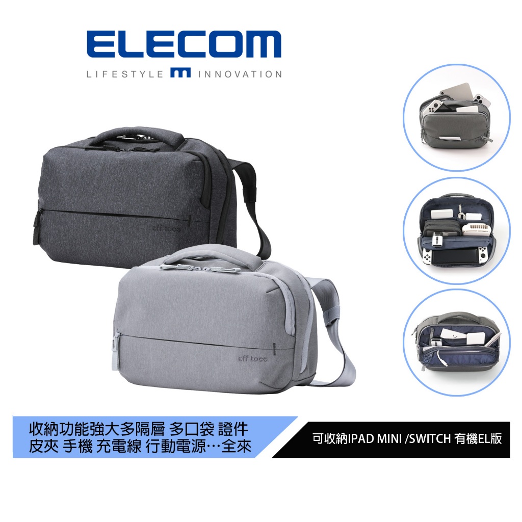 【日本ELECOM】off toco RFID防盜橫式多功能側背包 想像不到的大容量小包黑|灰ELECOM 台灣旗艦店