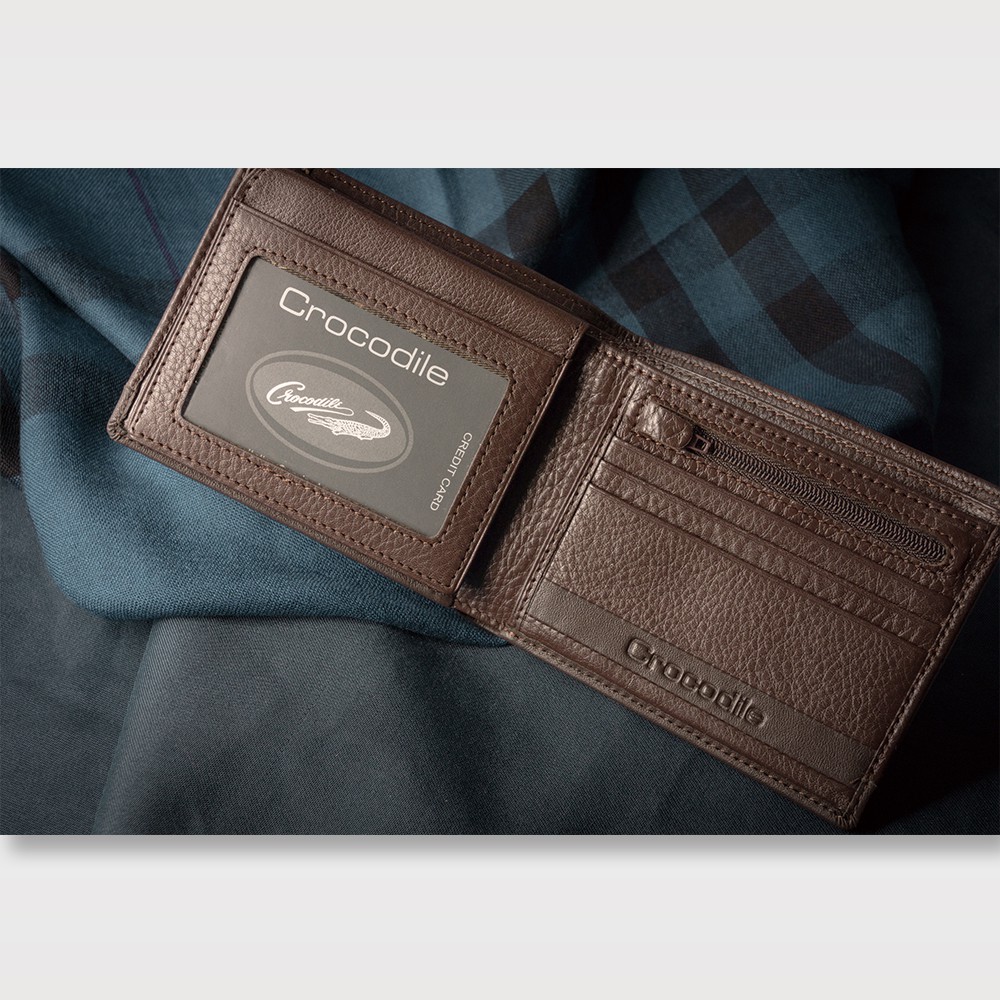 Crocodile鱷魚皮件 男真皮短夾皮夾 男生錢包推薦 9卡拉鍊 Naturale 5-0103-11002咖啡色Bifold & Trifold WalletsCrocodile 鱷魚皮件官方旗艦店