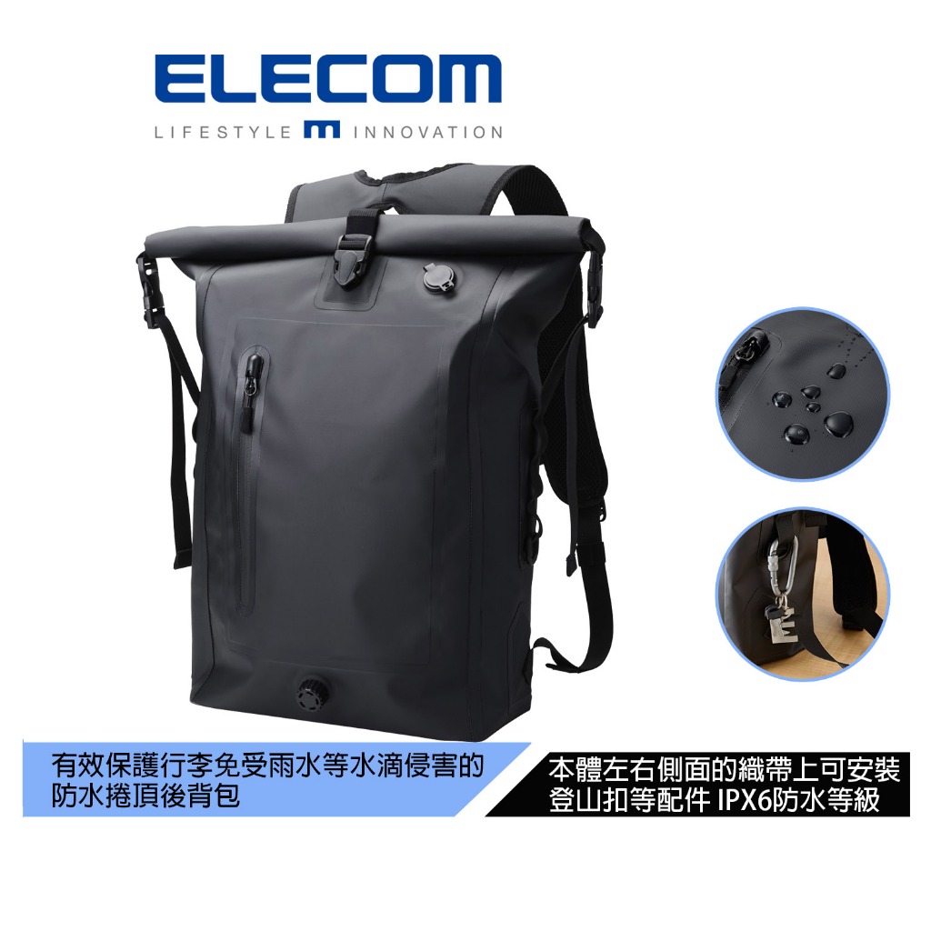 【日本ELECOM】ELECOM防水IPX6捲蓋後背包-黑 適合戶外及急難時用【日本ELECOM】ELECOM防水IPX6捲蓋後背包-黑 適合戶外及急難時用ELECOM 台灣旗艦店
