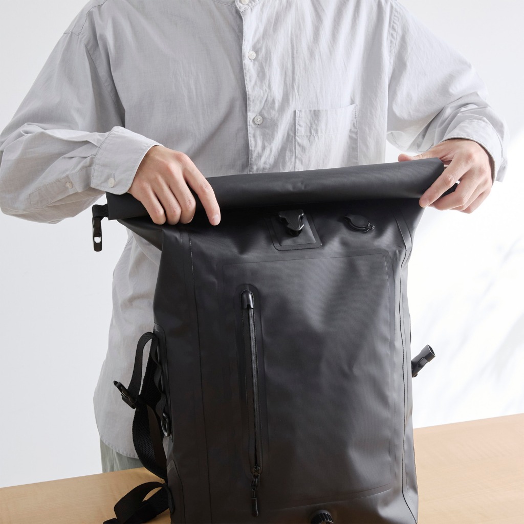 【日本ELECOM】ELECOM防水IPX6捲蓋後背包-黑 適合戶外及急難時用