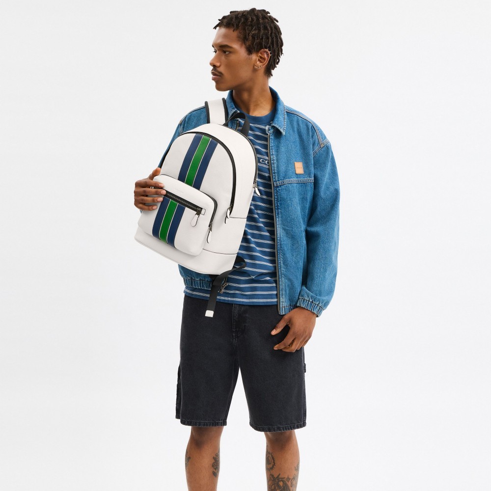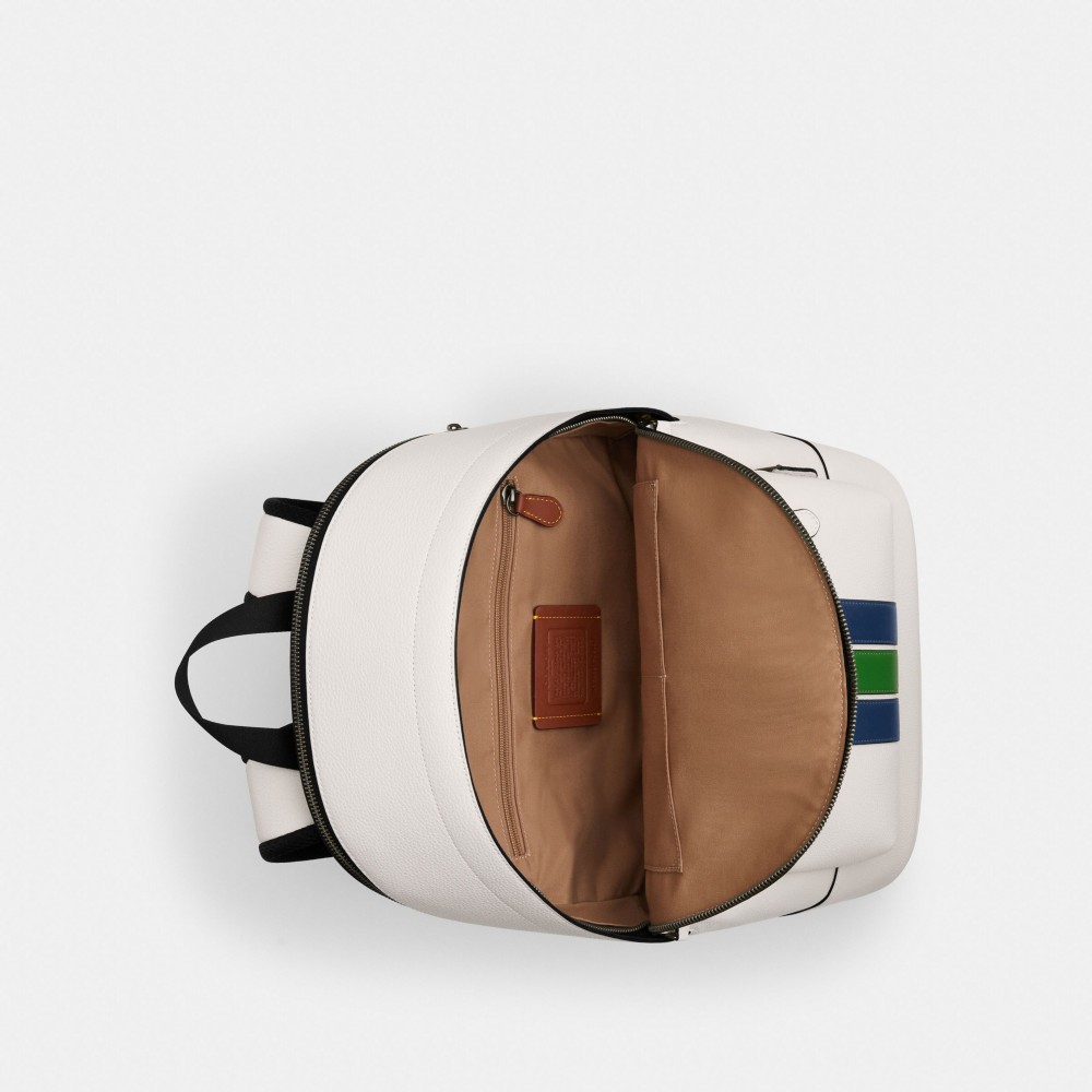 【COACH】 VARSITY條紋WEST後背包-QB/粉筆白色 混合色(CBI37)|官方直營QB/粉筆白色 混合色COACH官方旗艦店