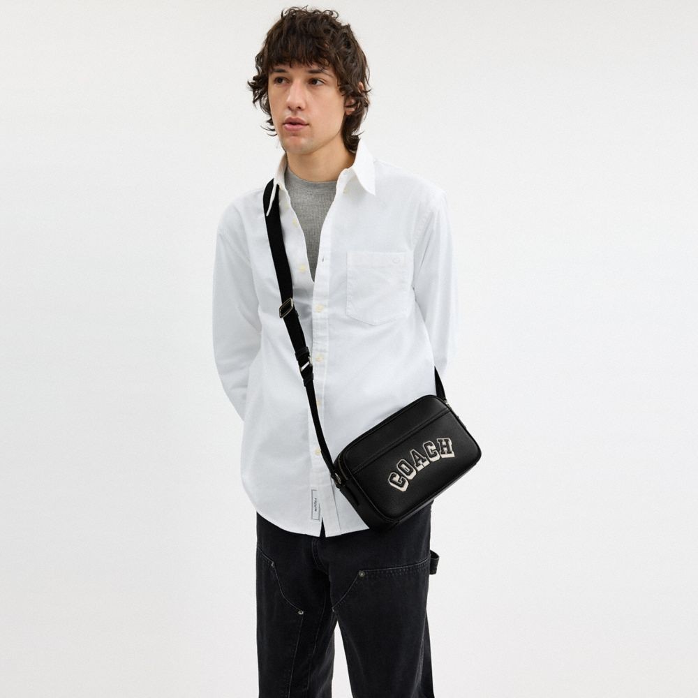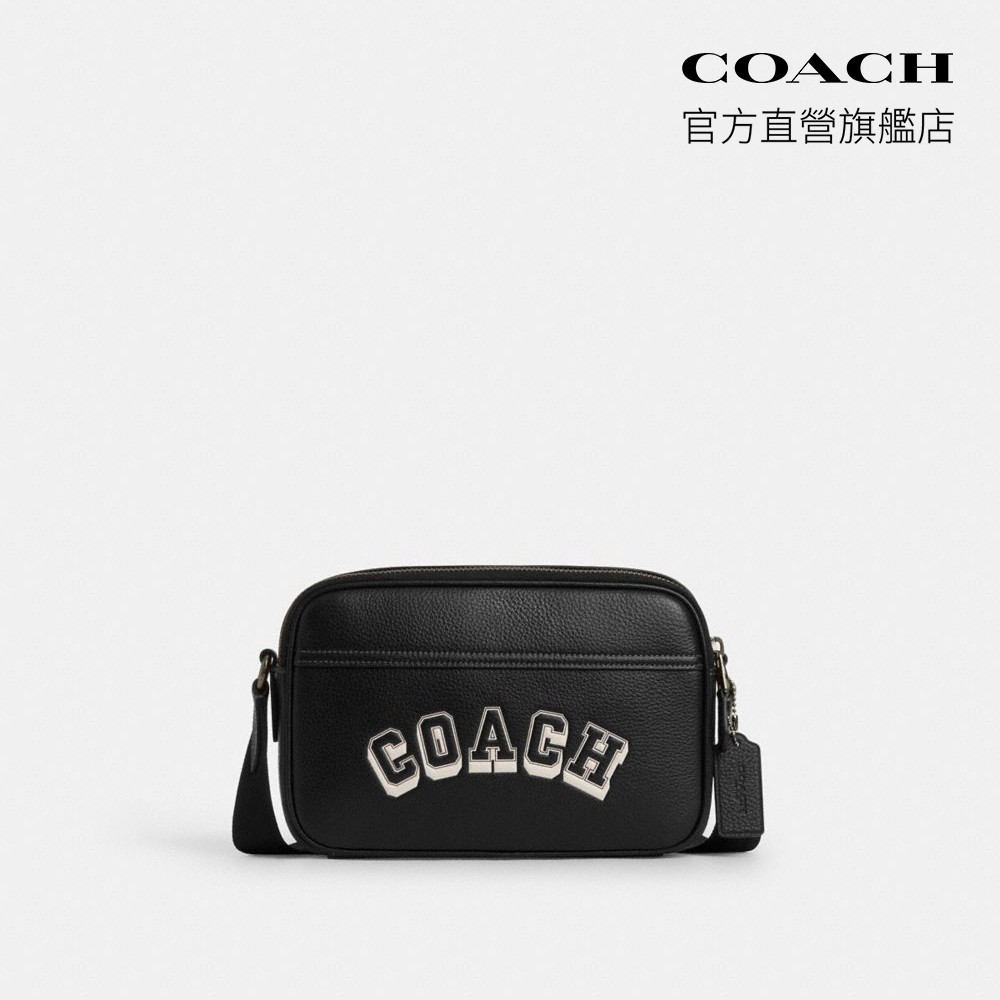 【COACH】GRAHAM VARSITY圖案斜背手袋-青銅色硬體/黑色/粉筆白色(CAJ64)|官方直營青銅色硬體/黑色/粉筆白色COACH官方旗艦店