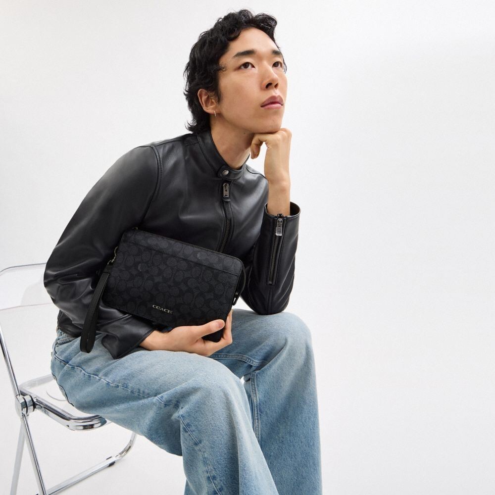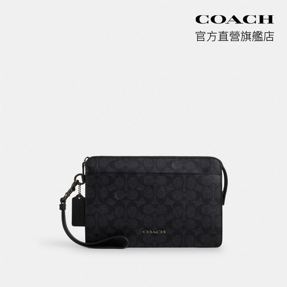 【COACH】經典Logo拉鍊手拿包-QB/炭黑色/黑色(CW168)|官方直營QB/炭黑色/黑色COACH官方旗艦店
