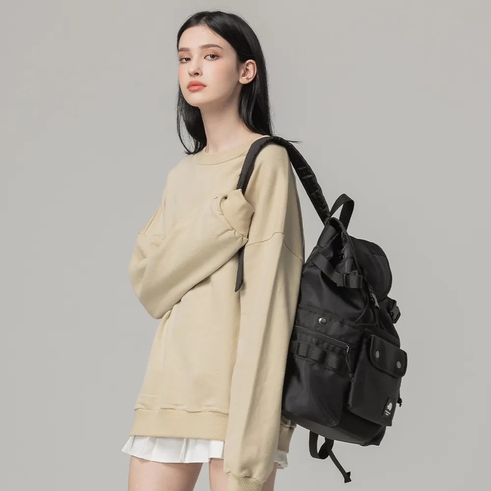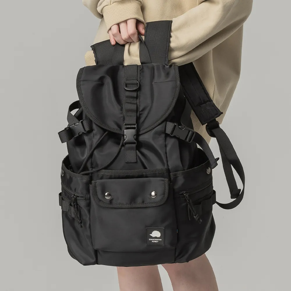北歐小刺蝟-327原宿旅人後背包 單肩包 雙肩包 肩背包 筆電包 男包 女包 AAstore黑色ChooShop潮流選品店