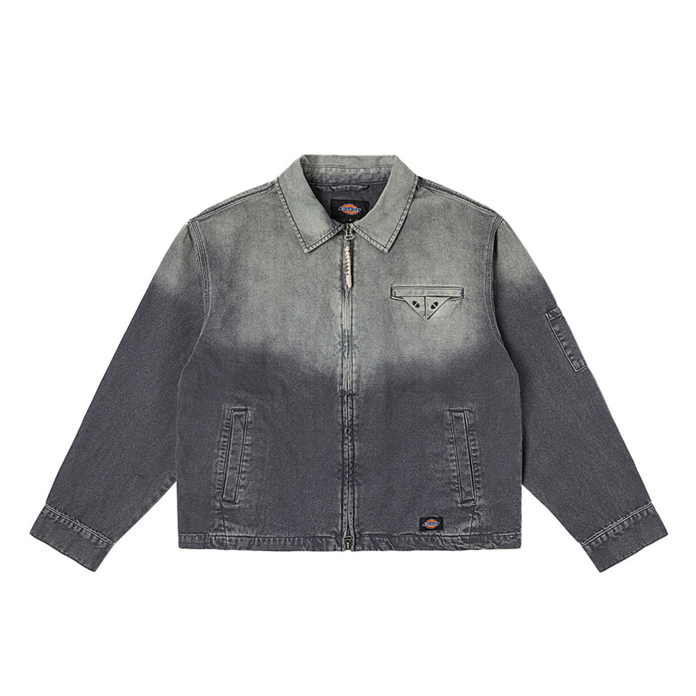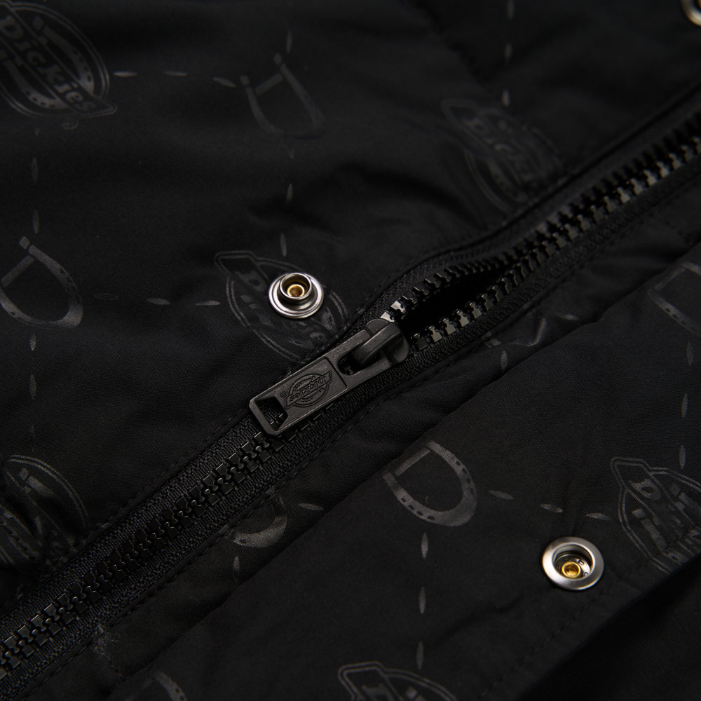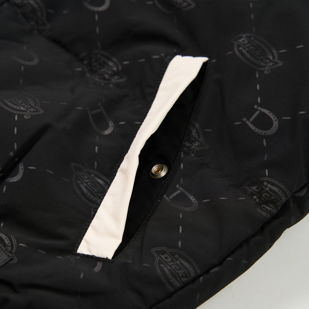 Dickies男款黑色防潑水滿版小Logo印花撞色衣袖休閒外套|DK0A87FABLK