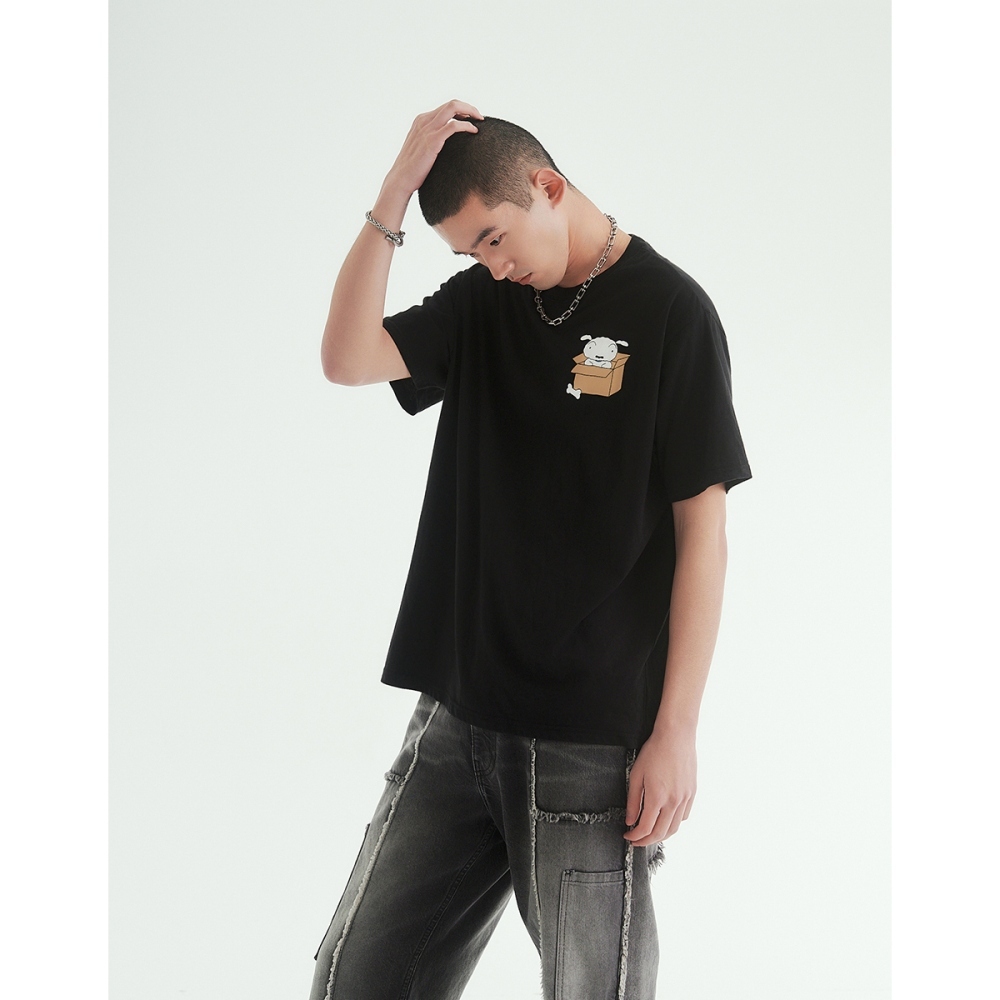 CACO-MIT 小白紙箱探頭短T‧親子款(二色)-男女共穿【J1SC507】09黑,XS|09黑,S|09黑,M|09黑,L|09黑,XL|09黑,2L|31玫粉,XS|31玫粉,S|31玫粉,M|31玫粉,L|31玫粉,XL|31玫粉,2LT-Shirtscaco_tw