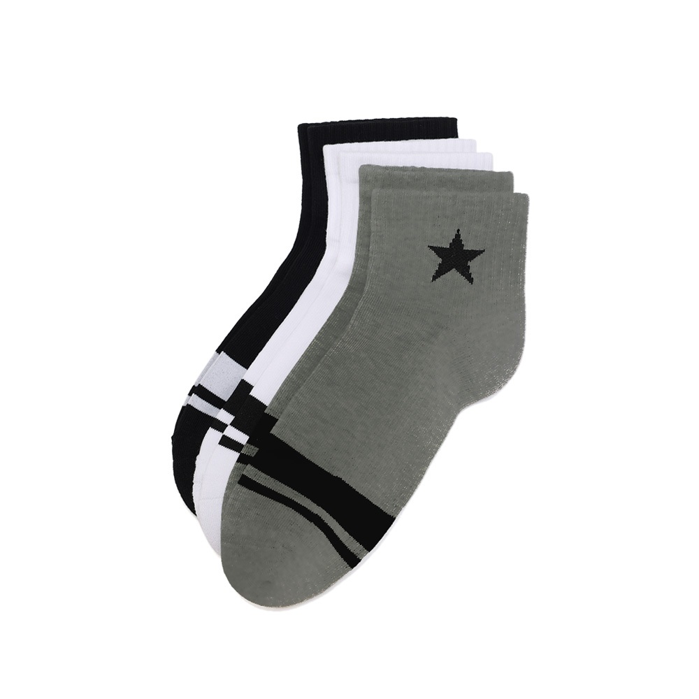 CONVERSE【授權專賣店】*2025新款*運動襪 短襪 3入裝 萊卡彈性 黑灰白 UC0648-042M|LCONVERSE|微笑專賣店
