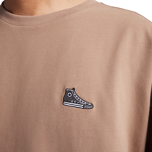 CONVERSE【授權專賣店】男女款短袖 小鞋標 休閒上衣OVER SIZE 寬鬆版 -卡其棕 10027239-A08S|M|L|XLT-ShirtsCONVERSE|微笑專賣店