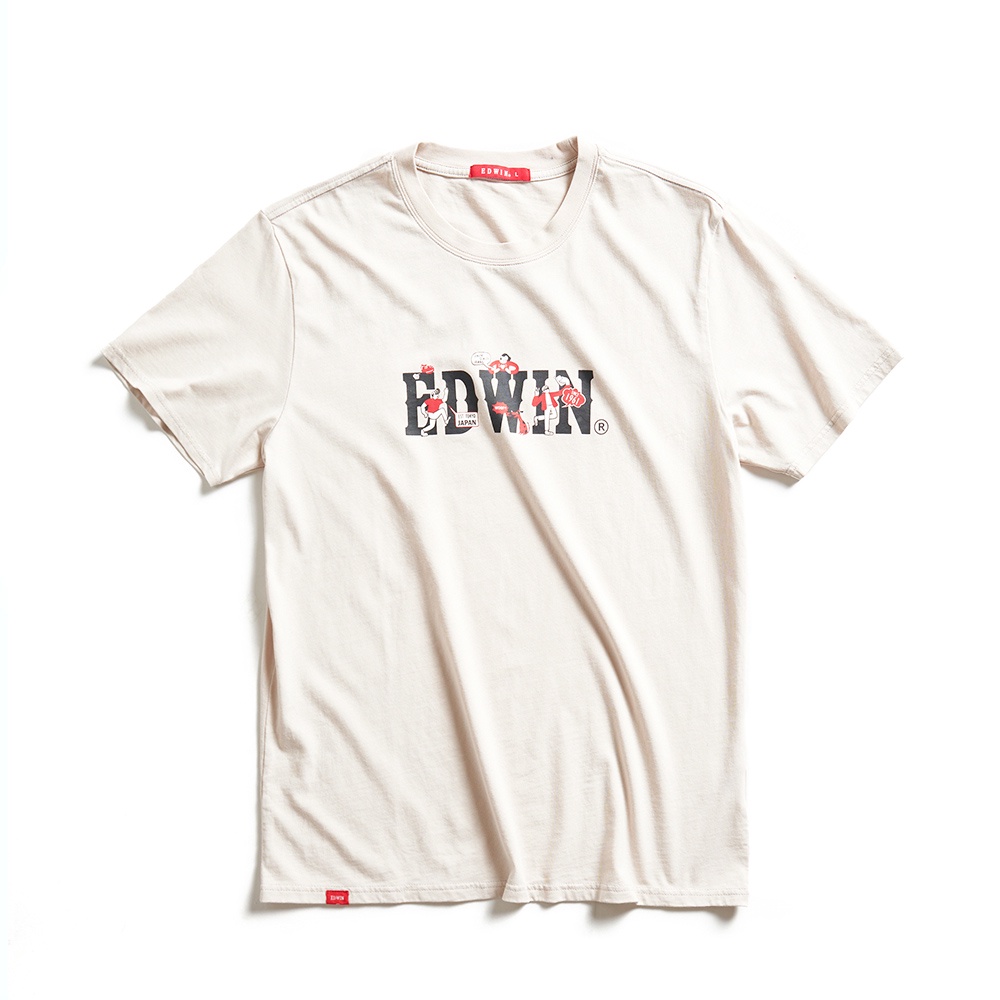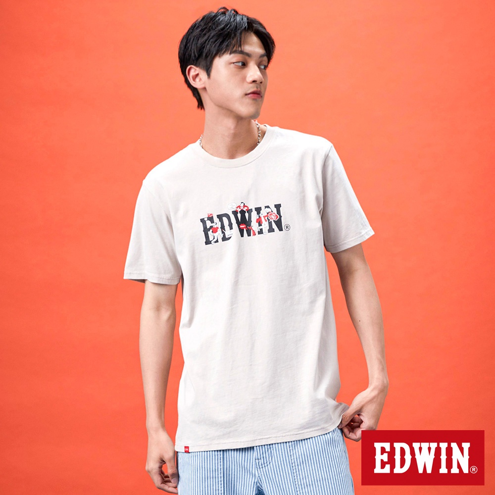 EDWIN 中性款 網路獨家 插畫LOGO短袖T恤(淺卡其)XL|S|M|LT-ShirtsEDWIN 官方旗艦店