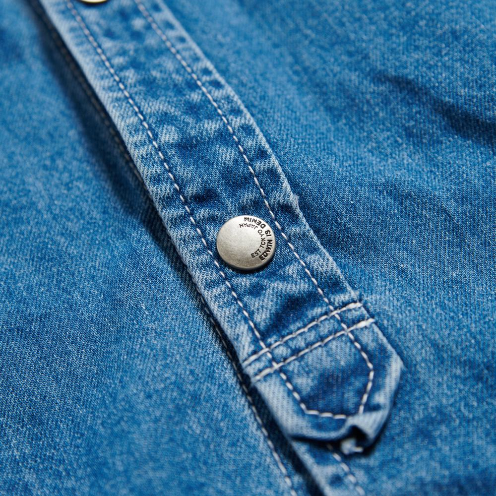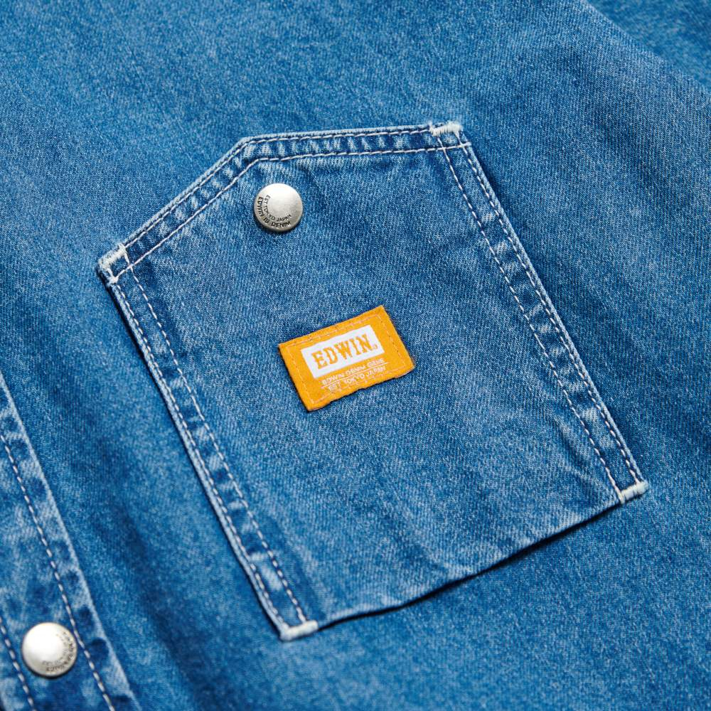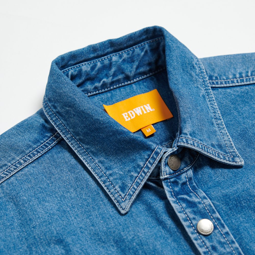 EDWIN 男款 橘標 寬版厚磅牛仔長袖襯衫(石洗藍)M|LShirtsEDWIN 官方旗艦店