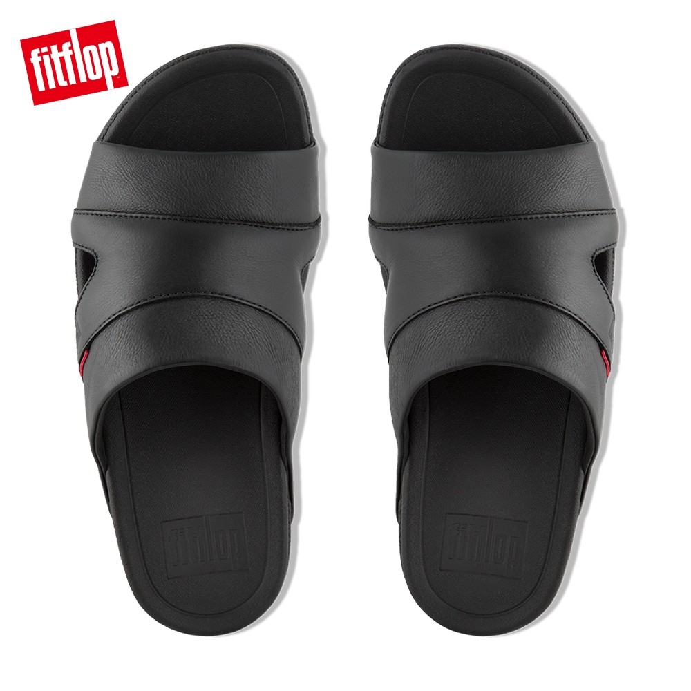 【FitFlop】FREEWAY POOL SLIDE IN LEATHER 簡約一片式皮革涼鞋-男(黑色)US11|US8|US9|US10SandalsFitFlop官方旗艦店