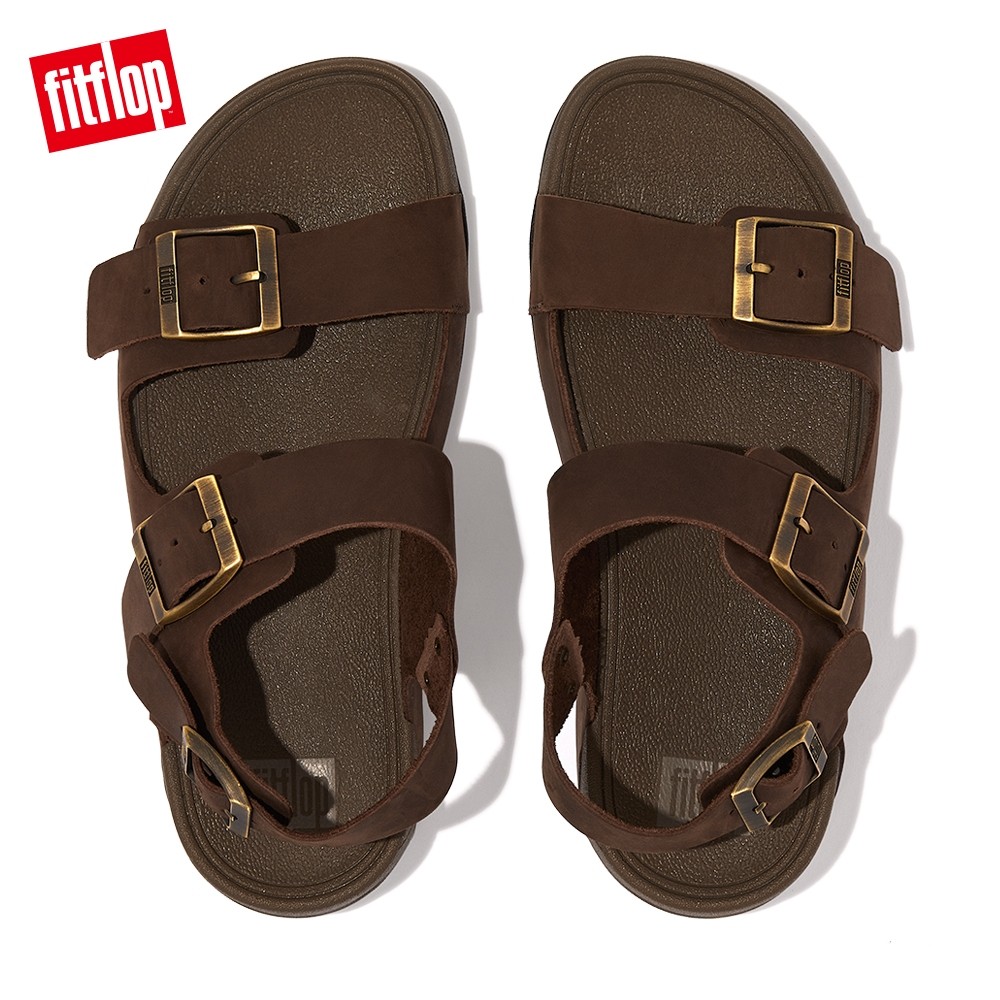 【FitFlop】GOGH MOC LEATHER BACK-STRAP SANDALS扣環皮革後帶涼鞋-男(巧克力棕)US10|US11|US8|US9SandalsFitFlop官方旗艦店