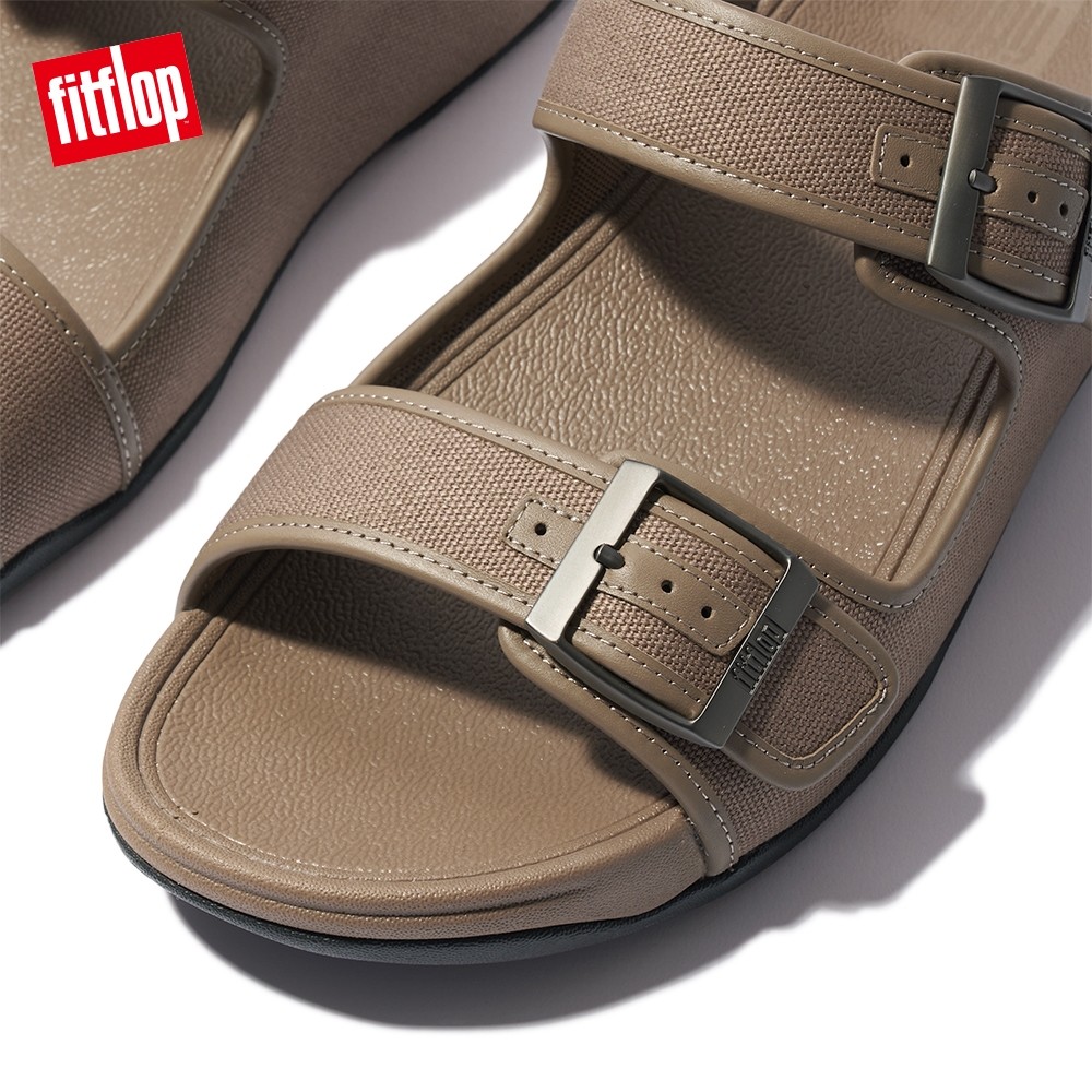 【FitFlop】GOGH MOC MENS BUCKLE CANVAS SLIDES 扣環帆布雙帶涼鞋 -男(灰褐色)US10|US11|US8|US9Flip FlopsFitFlop官方旗艦店