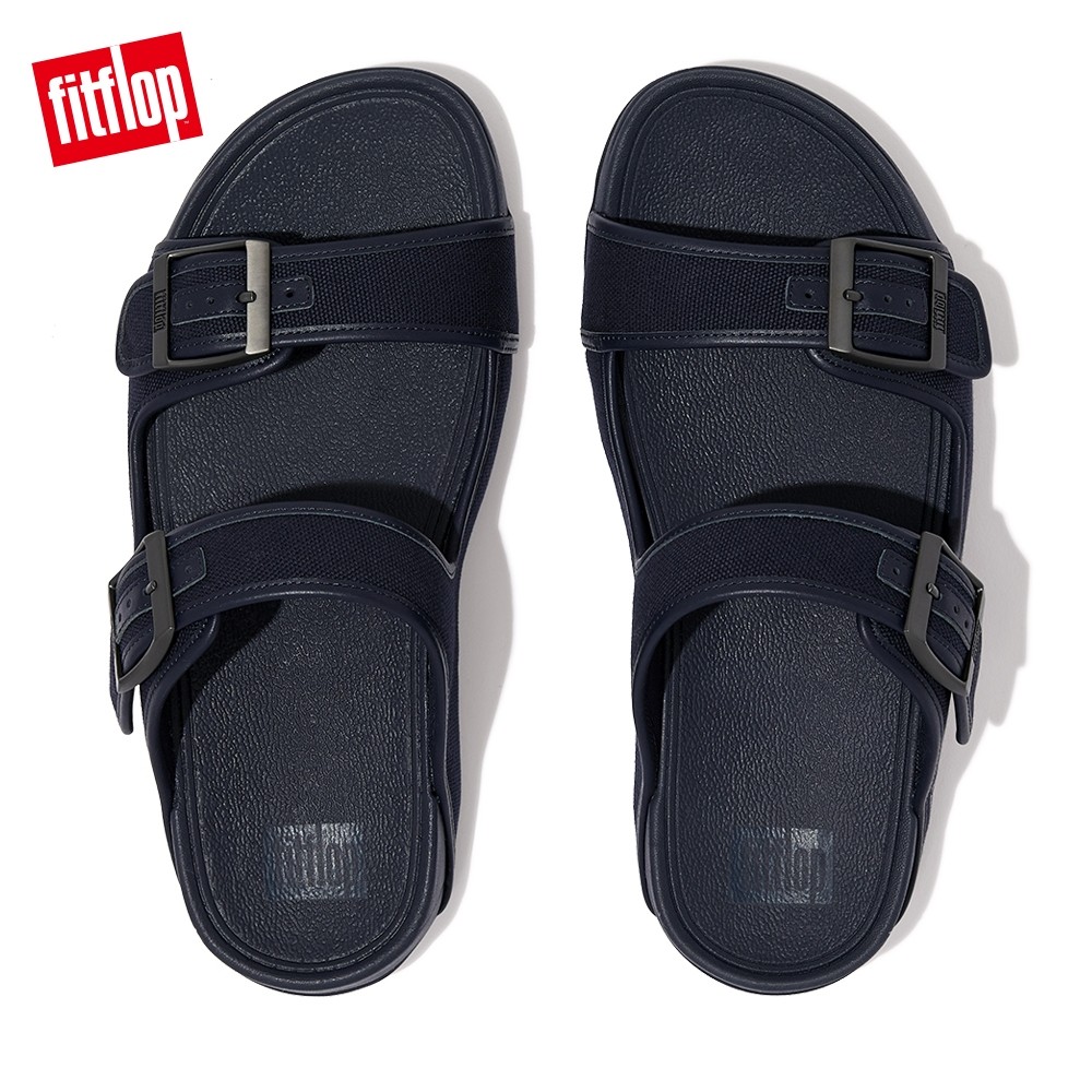【FitFlop】GOGH MOC MENS BUCKLE CANVAS SLIDES扣飾帆布雙帶涼鞋-男(午夜藍)US8|US9|US10|US11SandalsFitFlop官方旗艦店