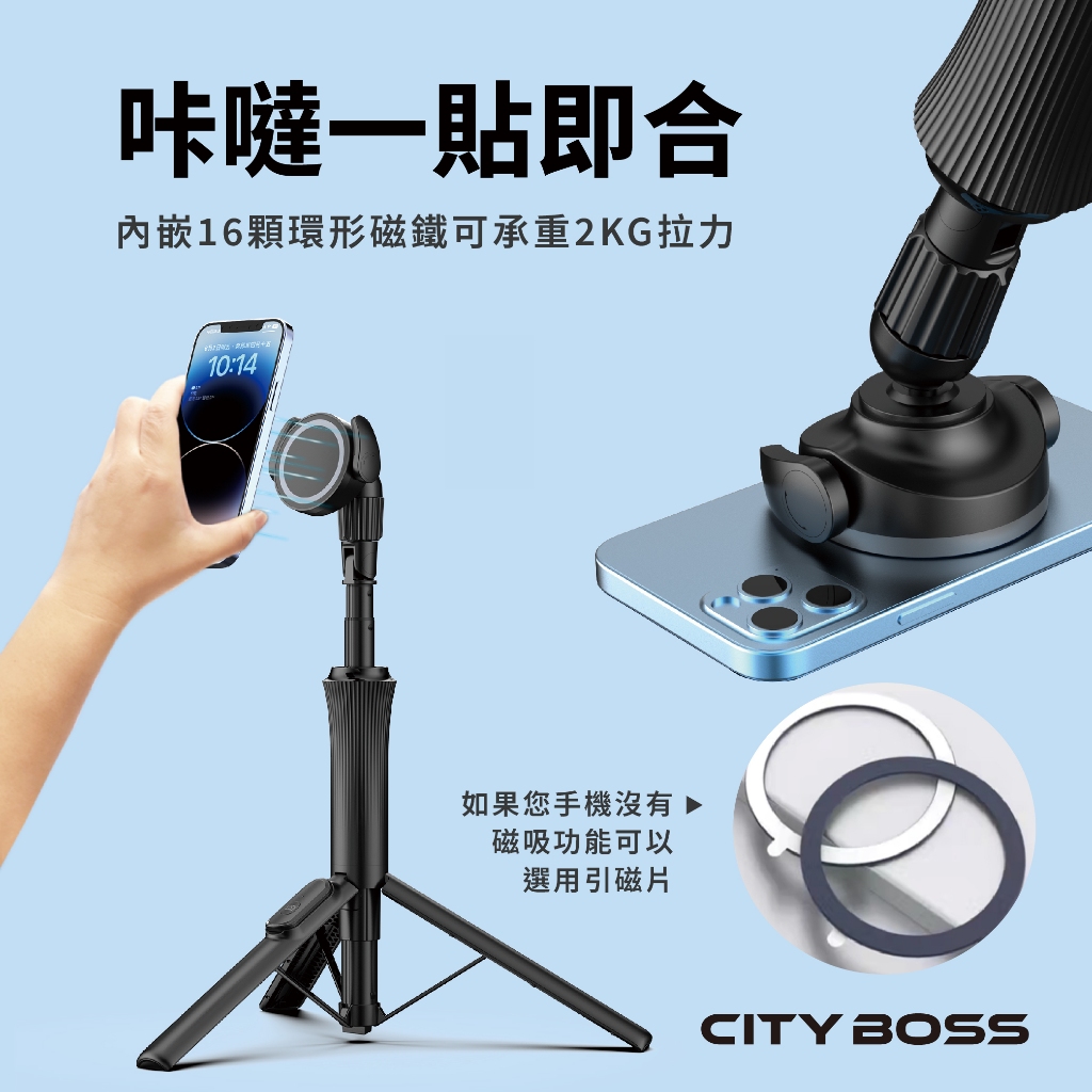 【磁吸夾具兩用】150cm多功能磁吸 自拍三腳架 藍牙遙控 可伸縮 適用安卓 蘋果 直播 旅遊神器WS-22001-4【黑色】|WS-22001-4【白色】Selfie AccessoriesCITY BOSS 官方旗艦店