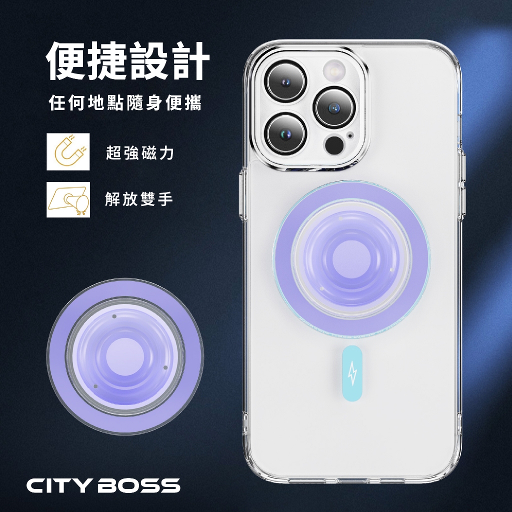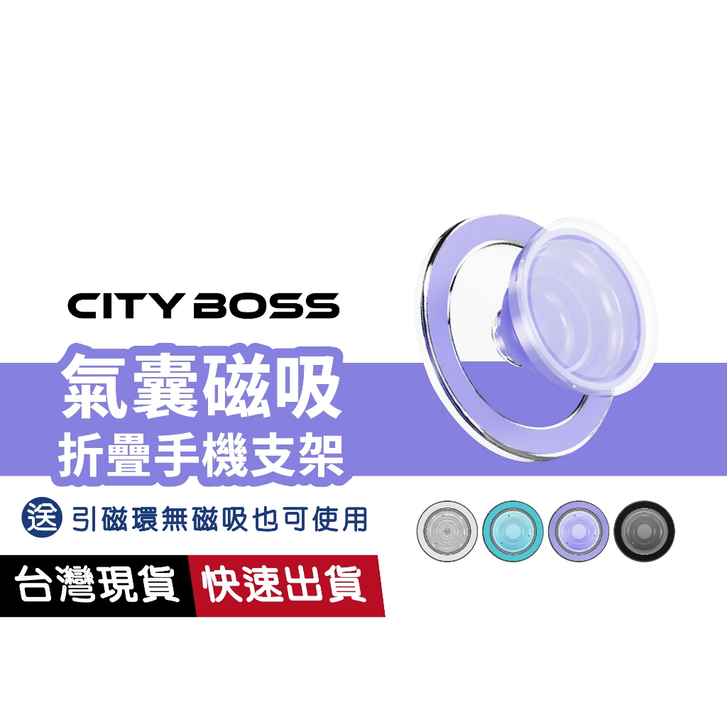 【氣囊磁吸】CBP-1 可折疊手機支架 桌面支架 懶人支架 穩固不掉 附磁吸環 適用 安卓 蘋果手機黑色|白色|青藍|紫色Phone GripsCITY BOSS 官方旗艦店