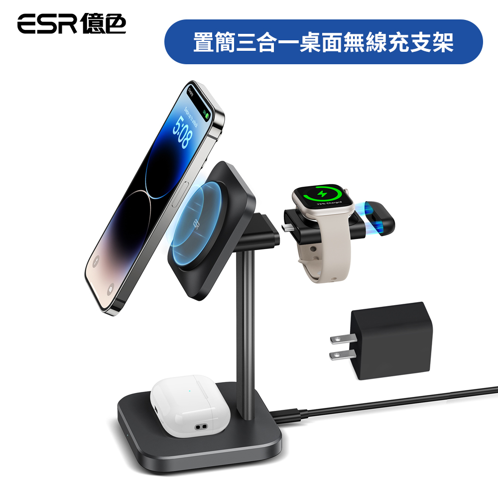 ESR億色 置簡三合一桌面支架無線充2C566+便攜式手錶無線充2C564 套裝(手錶充電有蘋果認證)磁吸充電 手機支架典雅白|魔力黑Cables, Chargers & ConvertersESR億色官方旗艦店