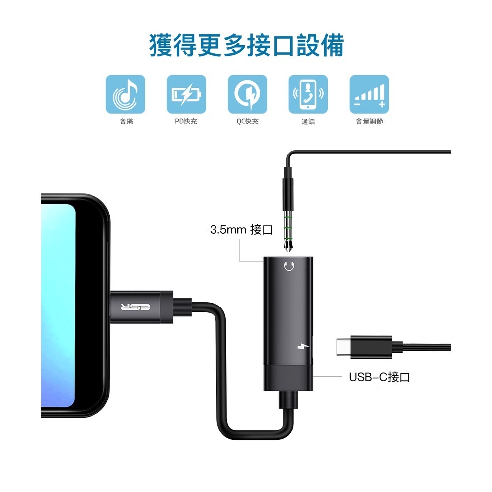 ESR億色 迅逸系列 Type-C轉3.5mm音源+PD充電轉接線 直頭款黑色(售完不補)|灰色(售完不補)Cables, Chargers & ConvertersESR億色官方旗艦店