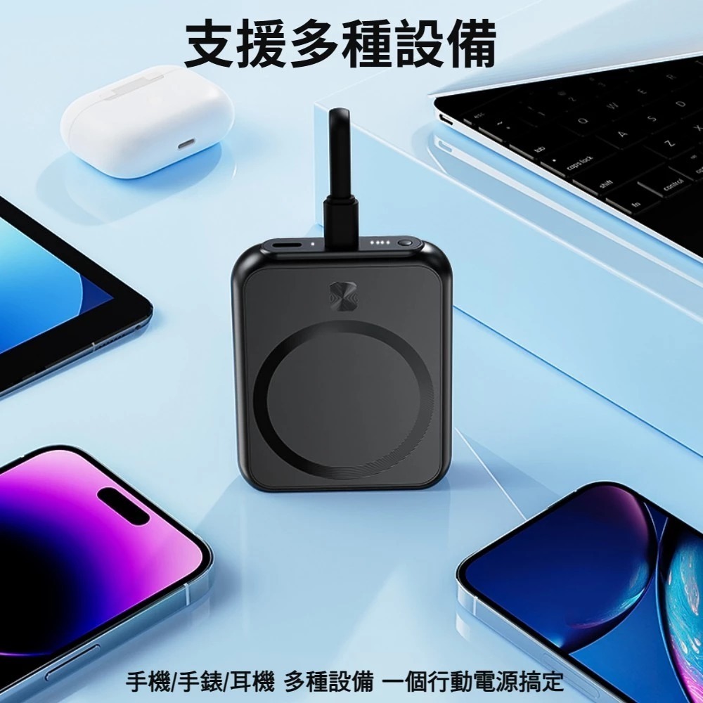 AnOne 5000mAh 磁吸無線行動電源【BSMI認證】自帶線行充 iPhone/AirPods/iWatch 充電黑色|白色|灰色Powerbanks & Batteriesesoon嚴選生活館| 十倍蝦幣回饋