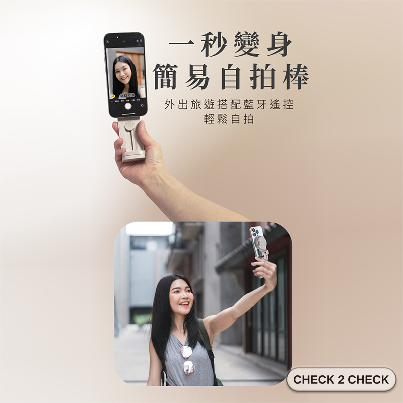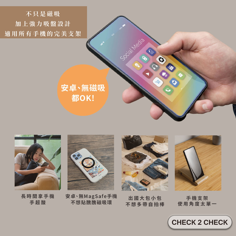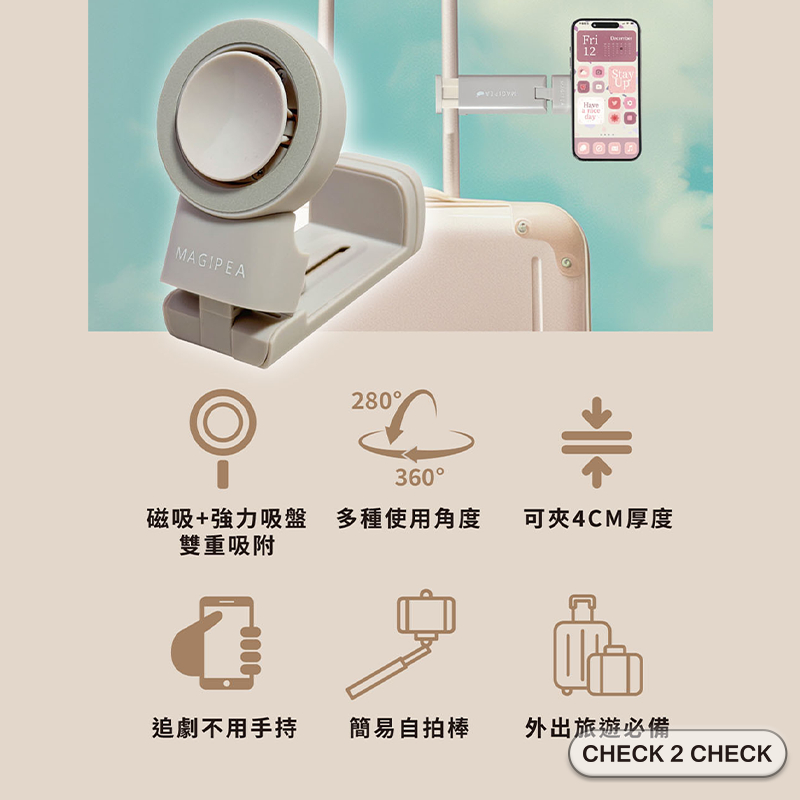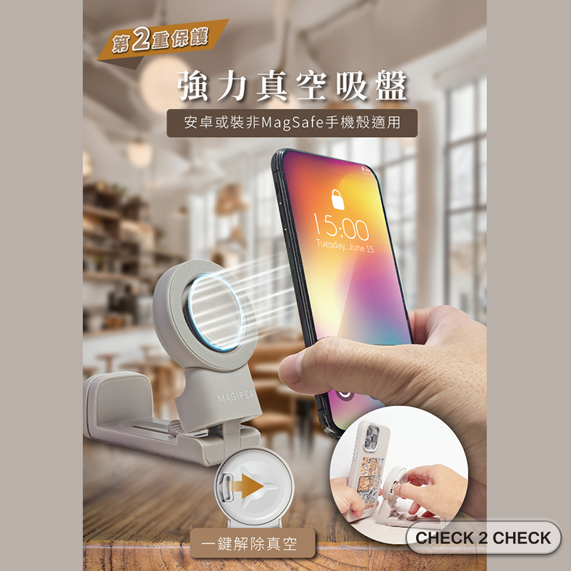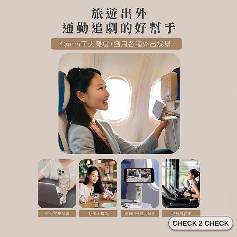美極品-磁吸旅行支架 通用款 真空吸附 螢幕支架 手機架 自拍架 追劇 飛機高鐵支架 【CLD01LA004】[現貨]奶茶|黑Phone GripsCHECK 2 CHECK官方旗艦店
