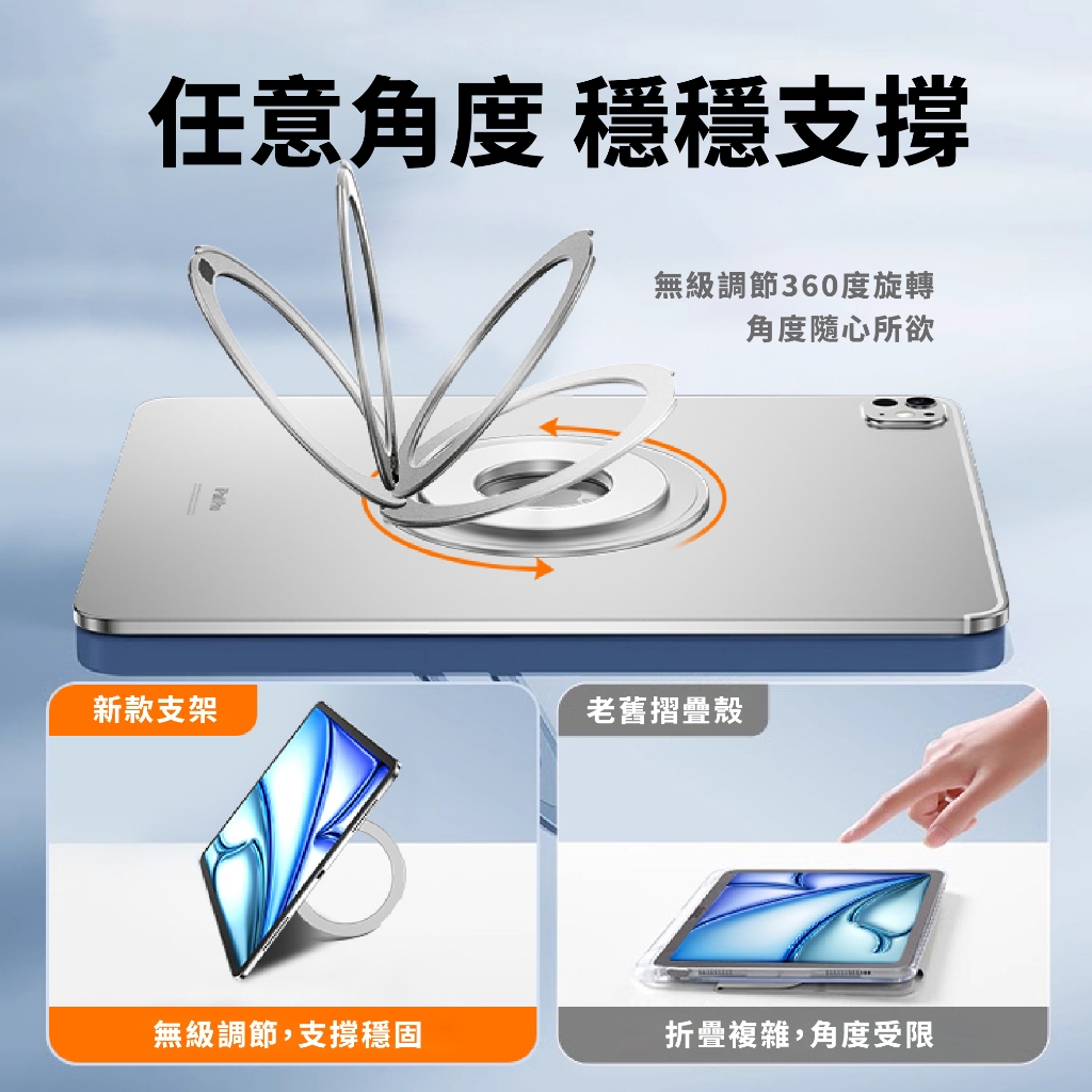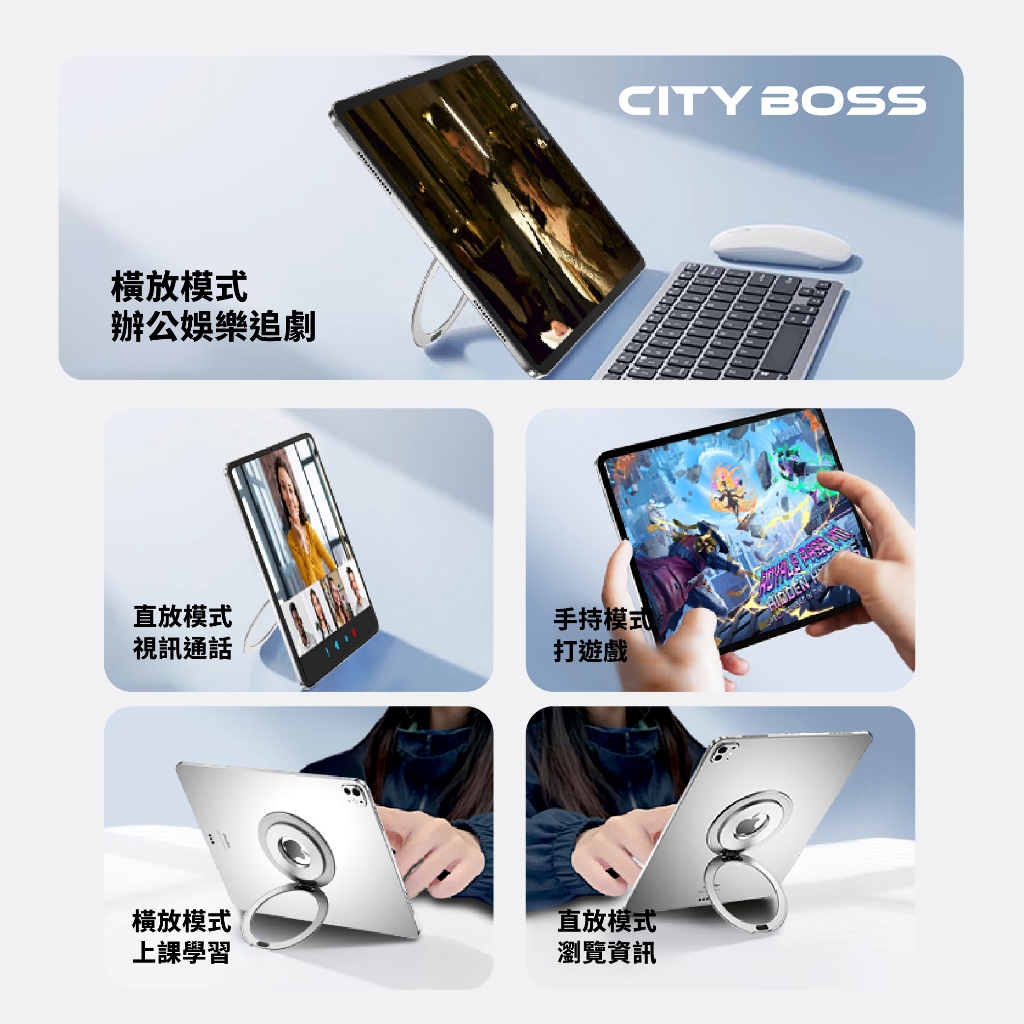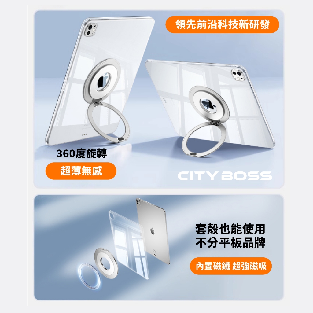 【支架+指環2合1】平板指環扣支架 黏貼式 超薄 金屬支架 360°可轉 可搭Magsafe支架 適用iPad 安卓平板Y8 黑色|Y8 粉色|Y8銀色Phone GripsCITY BOSS 官方旗艦店