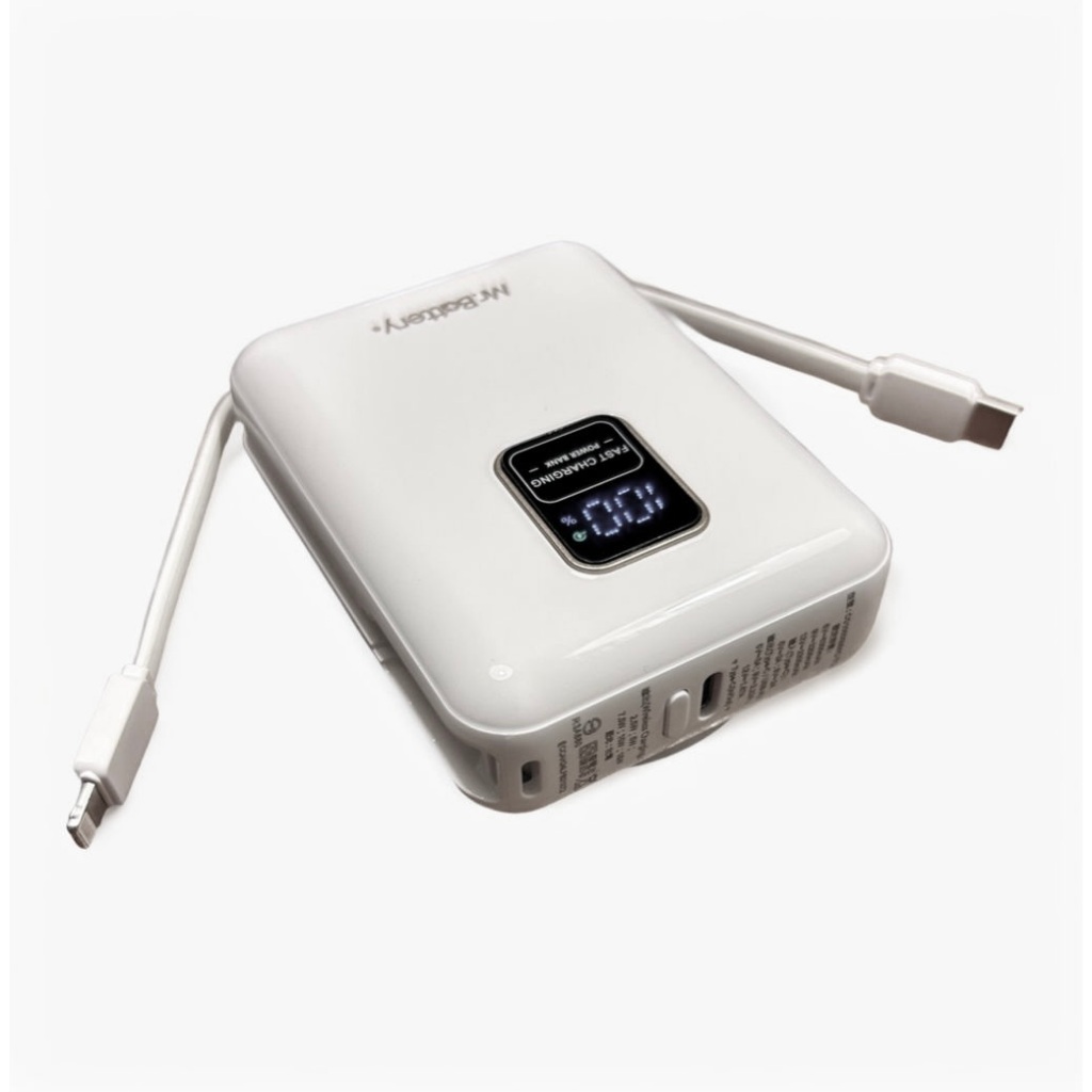 Mr.Battery 電池先生 台灣製造 10000mA 自帶雙充電線可拆,支援 MagSafe 磁吸三用行動電源黑色|白色Powerbanks & Batteriescheero阿愣官方旗艦館