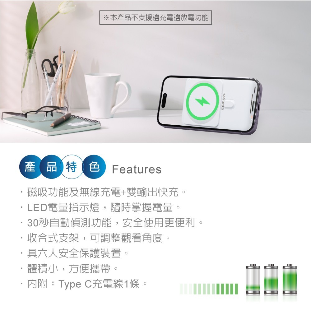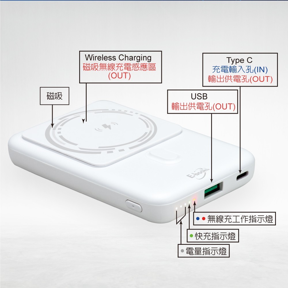 【台灣製造】E-books B84 磁吸無線快充+雙輸出行動電源/38Wh【台灣製造】E-books B84 磁吸無線快充+雙輸出行動電源/38WhPowerbanks & BatteriesE-books 官方旗艦店