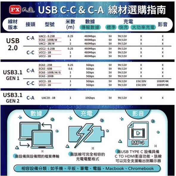PX大通 USB 2.0 A to C快速充電傳輸線(2m) UAC2-2W/UAC2-2BUAC2-2B黑|UAC2-2W白Cables, Chargers & Converterseasy to buy『爽爽買』