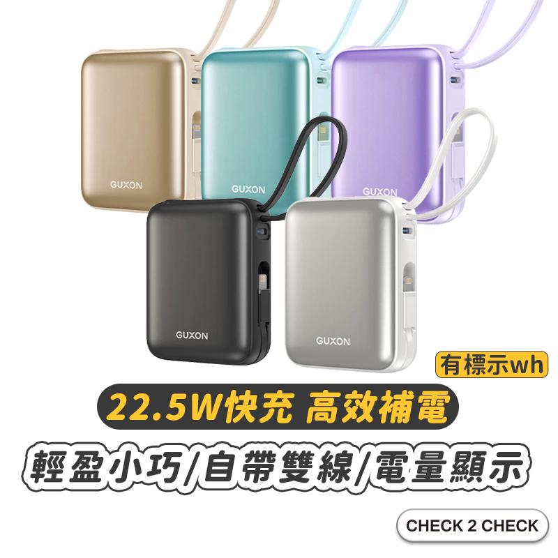 GUXON-巧方塊雙線行動電源 快充 輕巧迷你 自帶線電源 行動充 迷你電源【L2503C00016】[現貨] 禁外島月光銀|夜幕黑|蒂芬藍|霧光金|魔幻紫Powerbanks & BatteriesCHECK 2 CHECK官方旗艦店