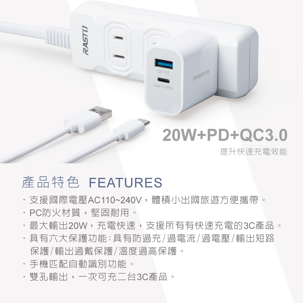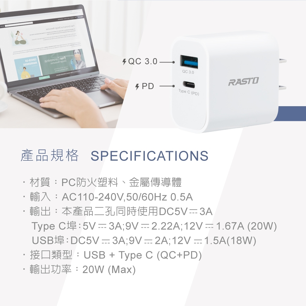 【台灣製造】RASTO RB30 20W 智能PD+QC3.0雙孔快速充電器【台灣製造】RASTO RB30 20W 智能PD+QC3.0雙孔快速充電器Cables, Chargers & ConvertersE-books 官方旗艦店