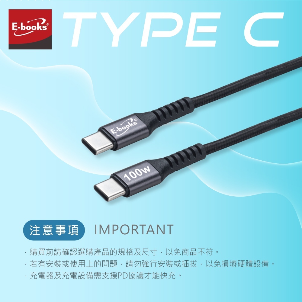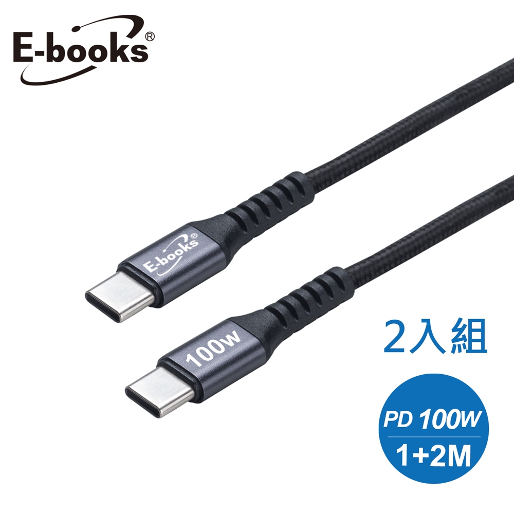 E-books XA44 鋁製Type C to C 100W極速充電傳輸線-1M+2ME-books XA44 鋁製Type C to C 100W極速充電傳輸線-1M+2MCables, Chargers & ConvertersE-books 官方旗艦店