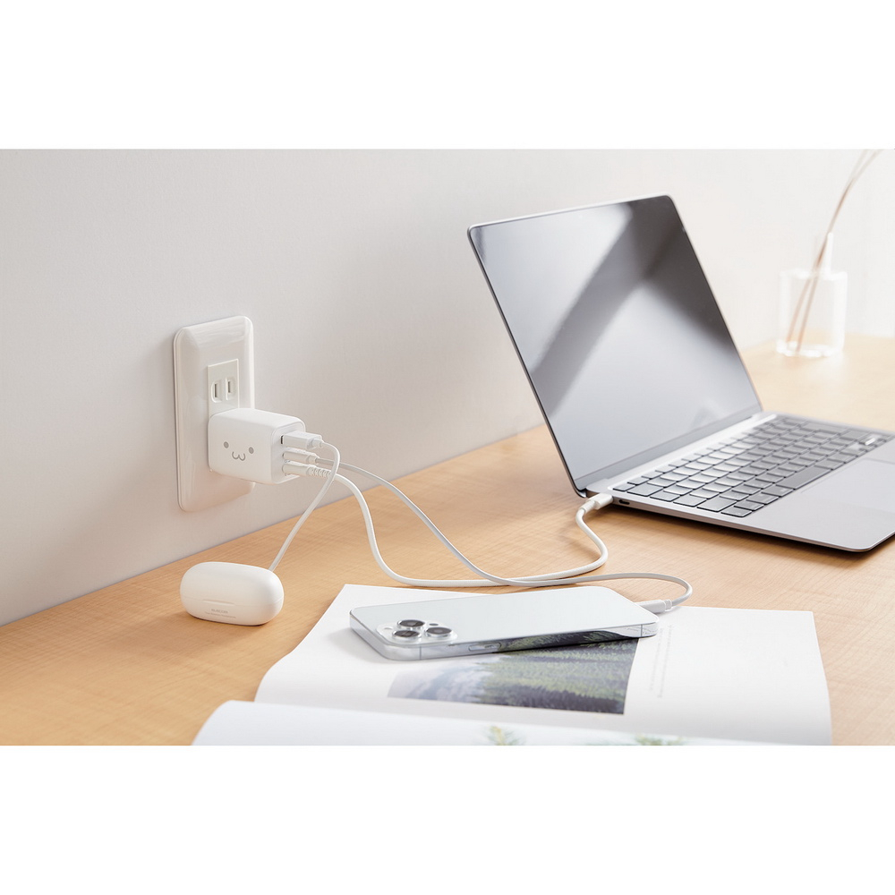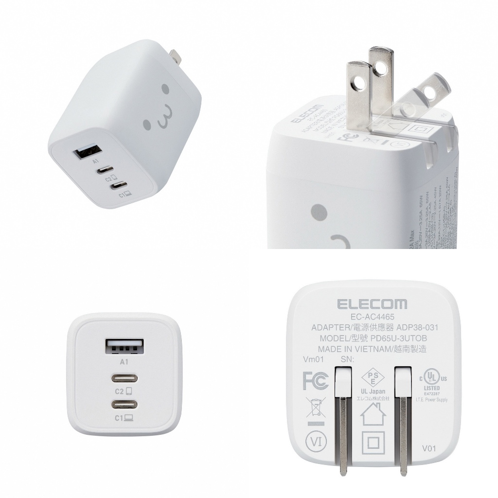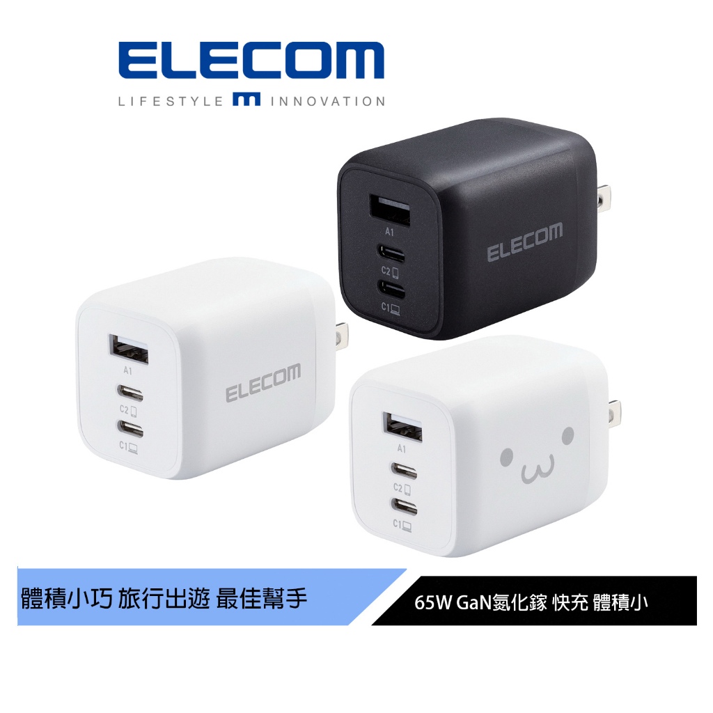 【日本ELECOM】 65W GaN氮化鎵三孔快速充電器 黑/笑臉/白 旅行出遊 小巧方便 搭配手機 平板更方便黑|笑臉白|白Cables, Chargers & ConvertersELECOM 台灣旗艦店