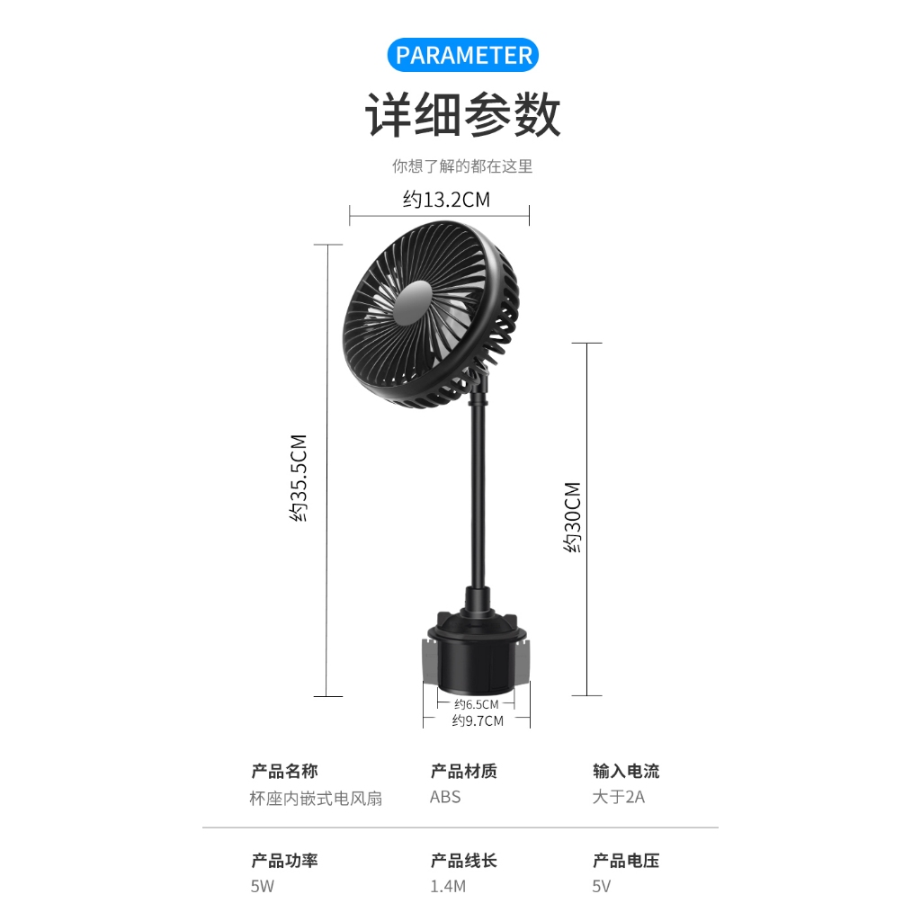 車用杯座風扇 USB風扇 水杯座風扇 煙灰缸風扇 車用 USB風扇 車用風扇 冷氣循環扇黑色USB & Mobile FansDUNU Lab